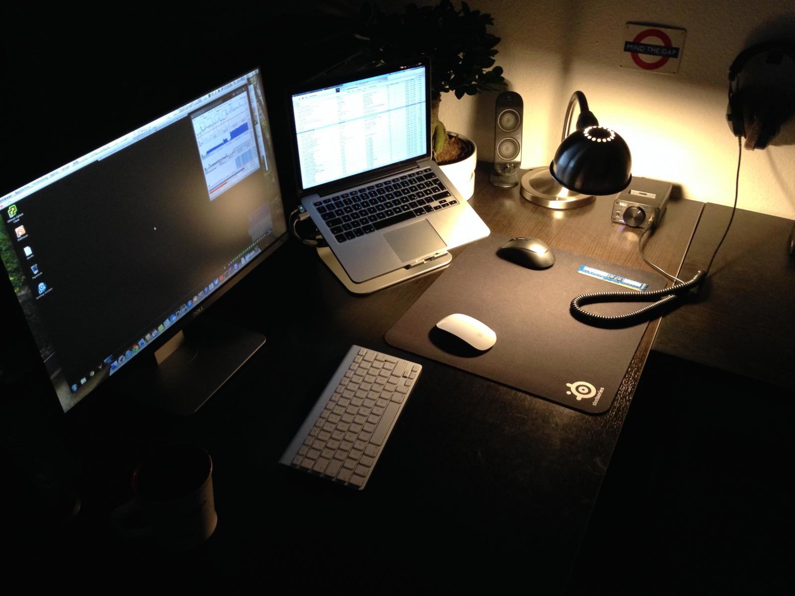 Der Schreibtisch an sich ist übrigens Eigenbau, durch den Winkel der Wand war da logischerweise nix fertiges zu finden