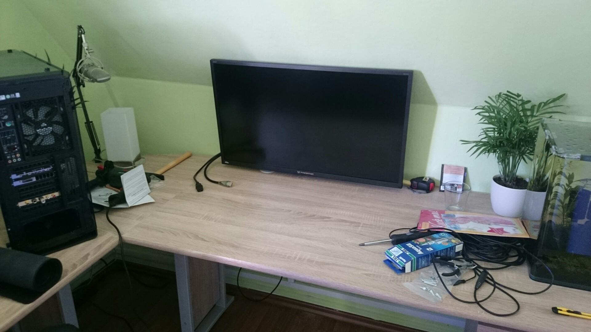 Was bei mir für Abhilfe gesorgt hat war das verlagern der Steckdosenleiste an die Schreibtischunterseite. Habe dies mit Heißkleber gelöst.Mit den Kabeln muss ich mir noch was einfallen lassen