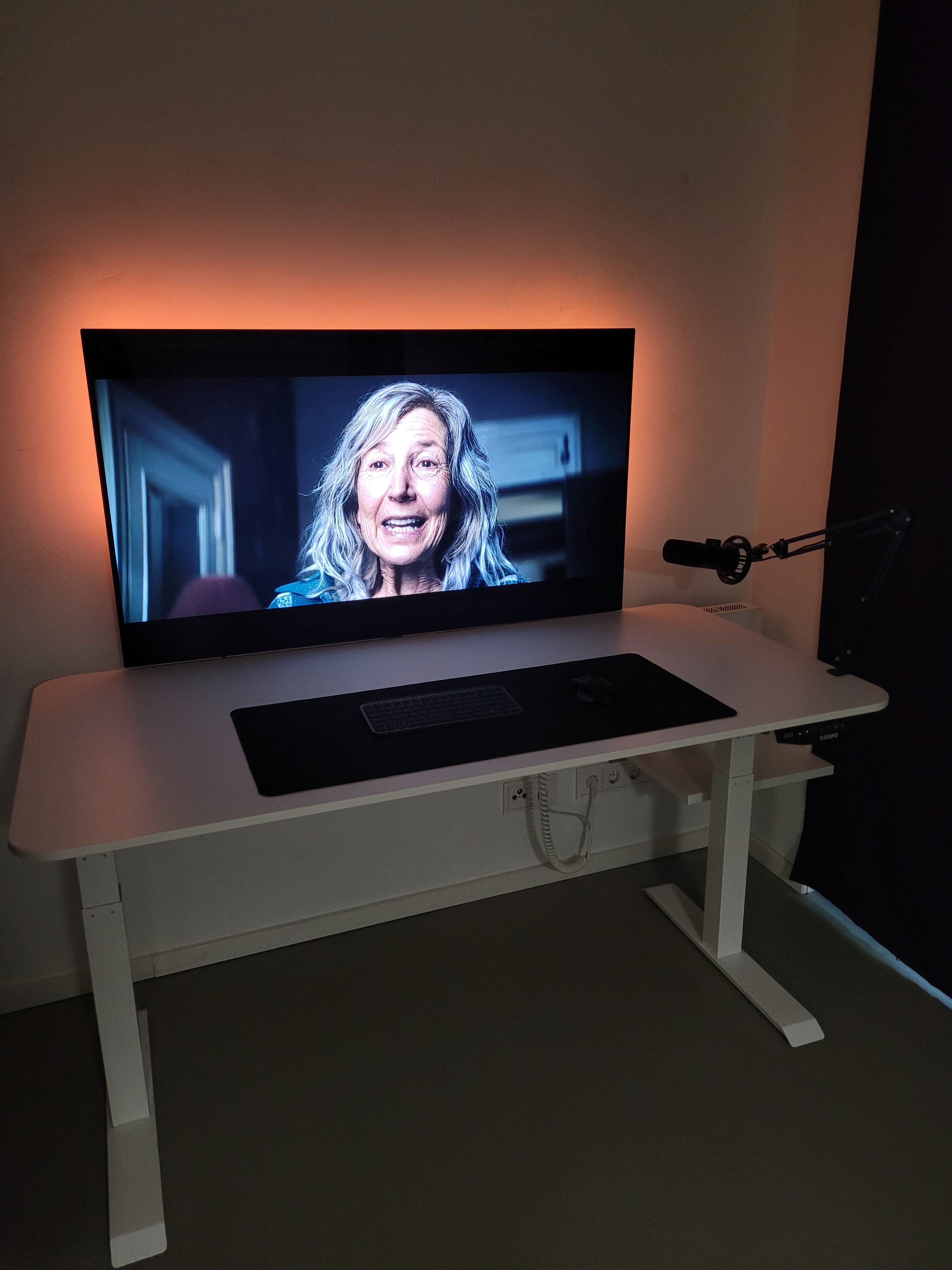Jetzt neu mit meinem 55" CX der vorher woanders hing. Und natürlich neuer Platte. Und reden muss man ja auch irgendwie, daher noch ein Mikrofon. (InEars sind nicht auf dem Bild)