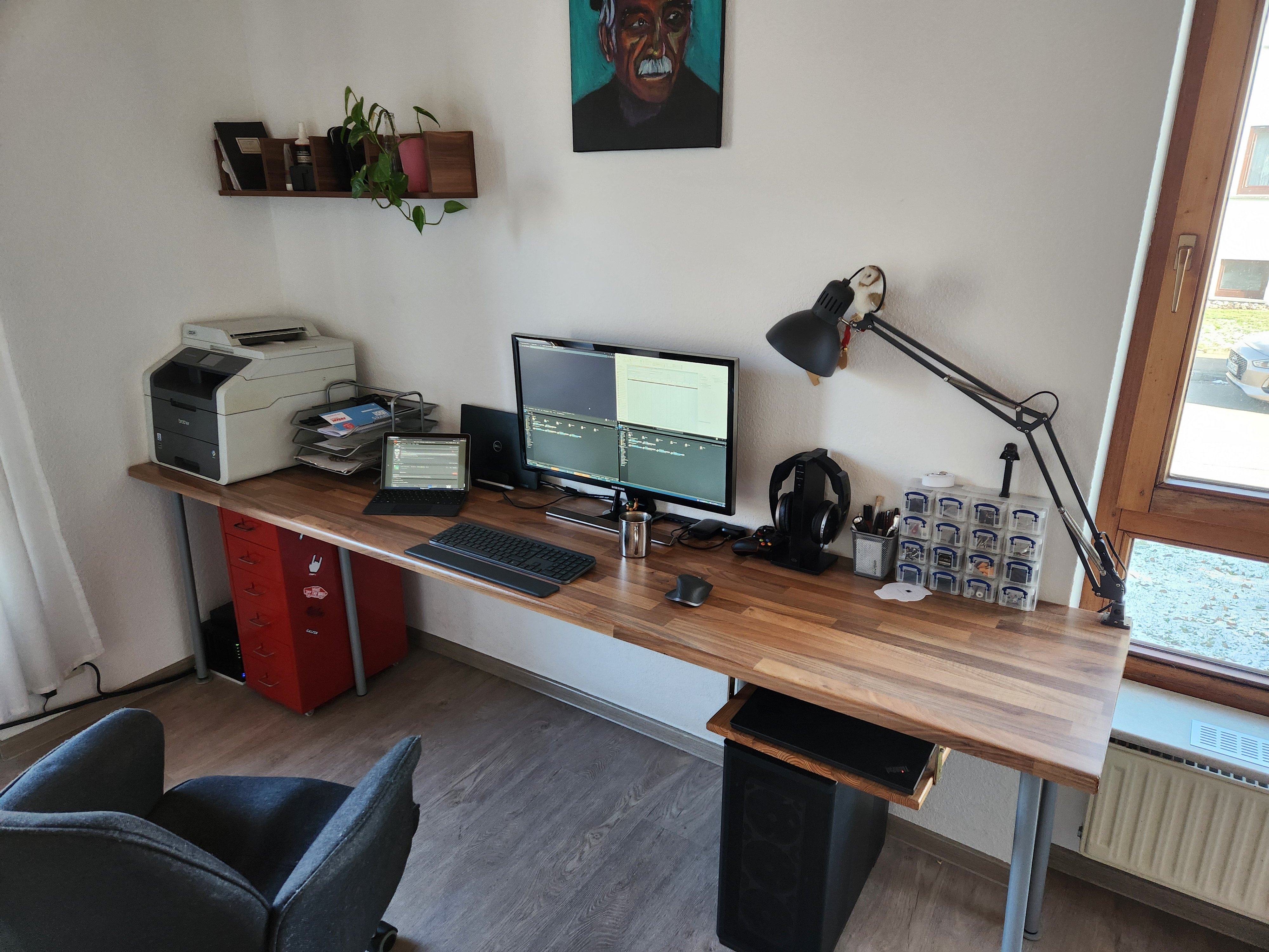 - Neuer Schreitisch (obviously), elektrisch höhenverstellbar