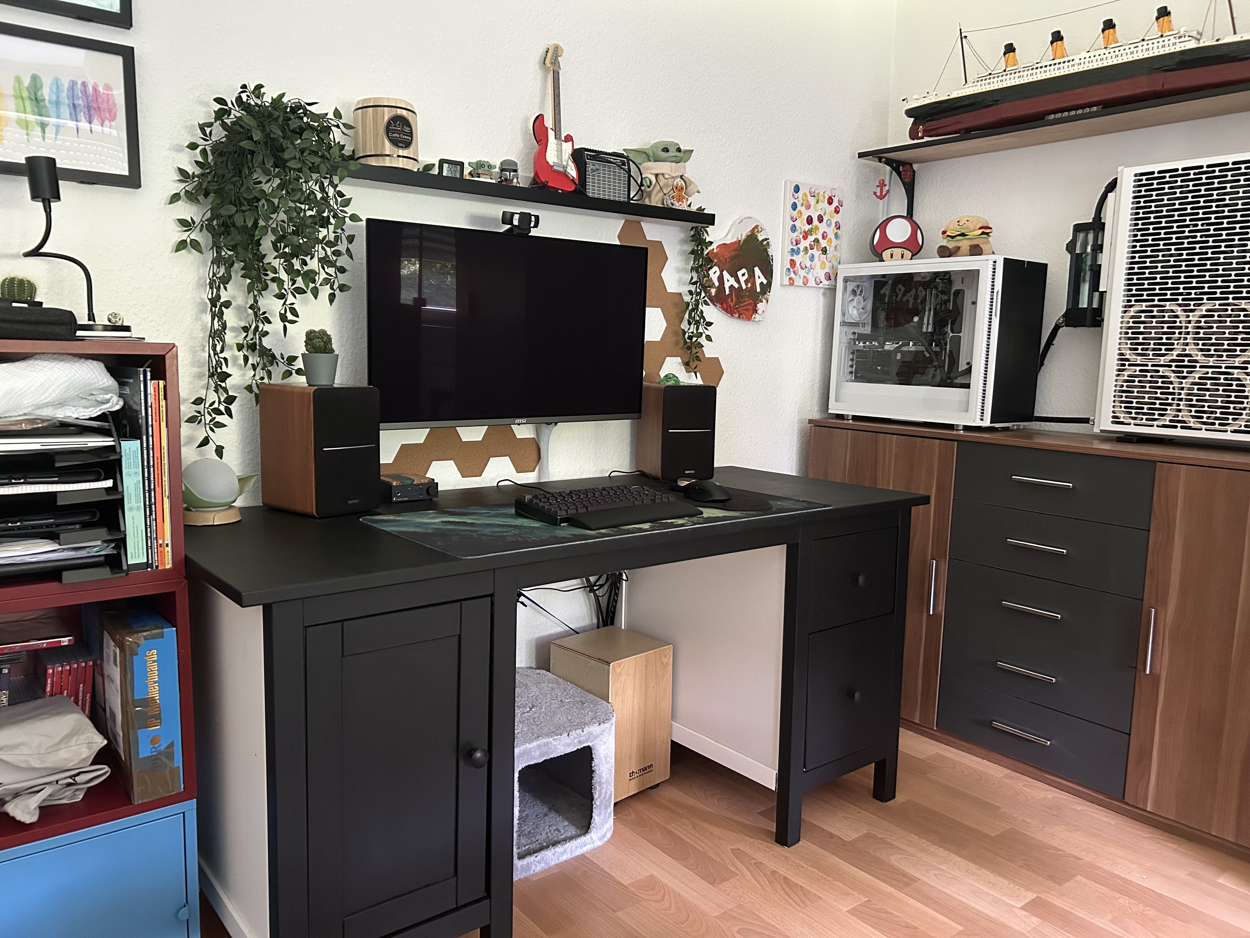 ). Ein HDMI Kabel ist gezogen und liegt unterm Tisch, kann wahlweise an die Docking-Station, an den PC oder wenn ich ihn aufbaue den BluRay-Player angeschlossen werden. Meist läuft der TV aber mit Inhalten über den ChormeCast.