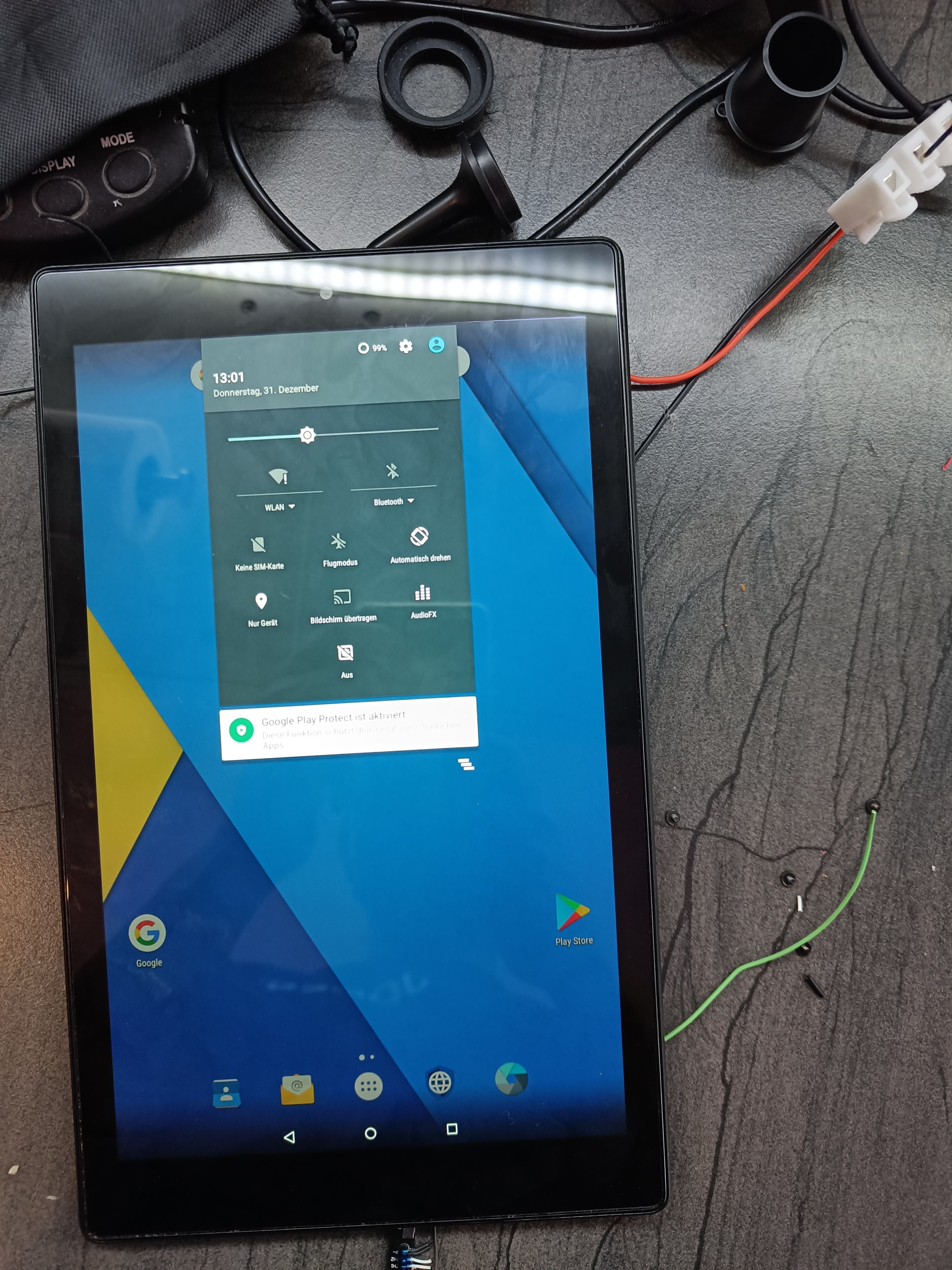 Ich musste beide Rote mit PH2 und beide Schwarze mit PH1 verbinden. Dann auf meine 2 Bündel + und - angeschlossen. Dann startet das Tablet.