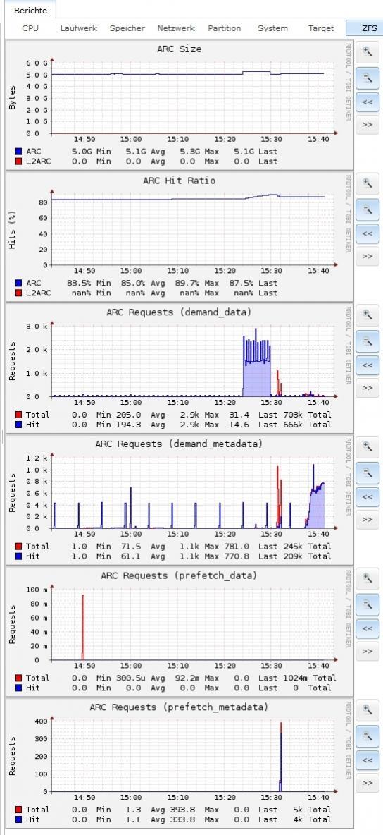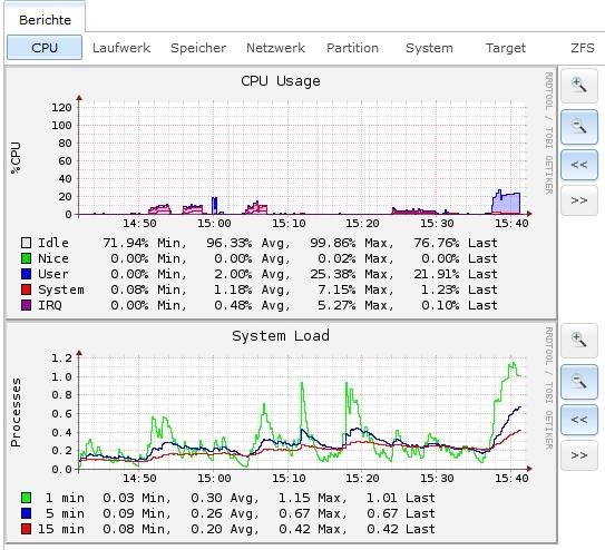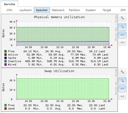 Der Proz spielt sich, Ram ist frei, auch sonst für mich nix auffälliges. Anbei die Screenshots von FreeNAS.