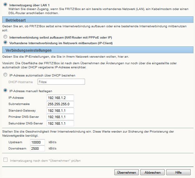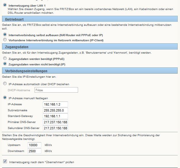 1. Internetzugang per LAN 1/Internetverbindung selber aufbauen/Zugangsdaten werden nicht benötigt
