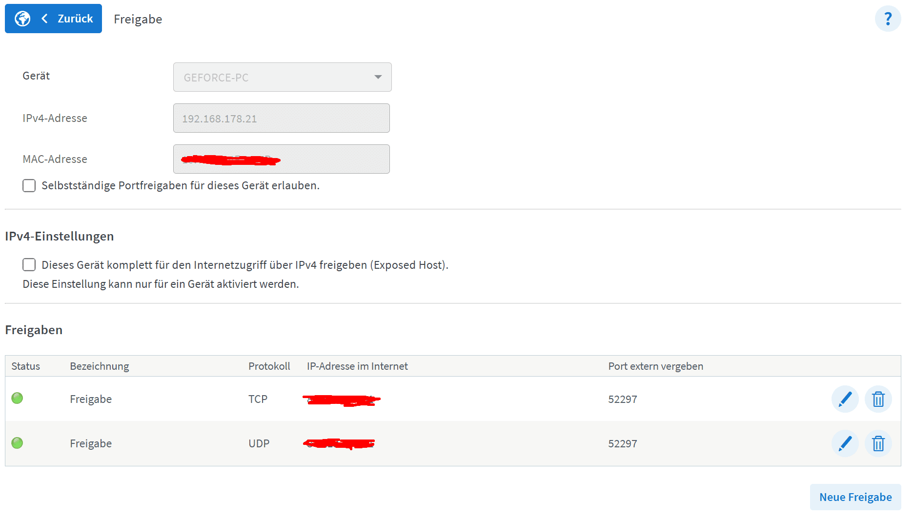 freigegeben sind blockert. Da ich an den Einstellungen in der Fritzbox selber nichts geändert habe muss es an Windows liegen.