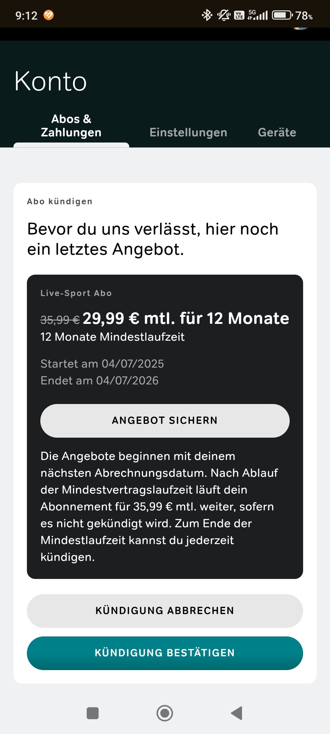 Ich habe die Kündigung aus Prinzip aufrechterhalten - besonders dumm: Die ersten 12 Monate waren kostenlos, und ich hatte den Vertrag erst seit 15 Monaten. 🤣