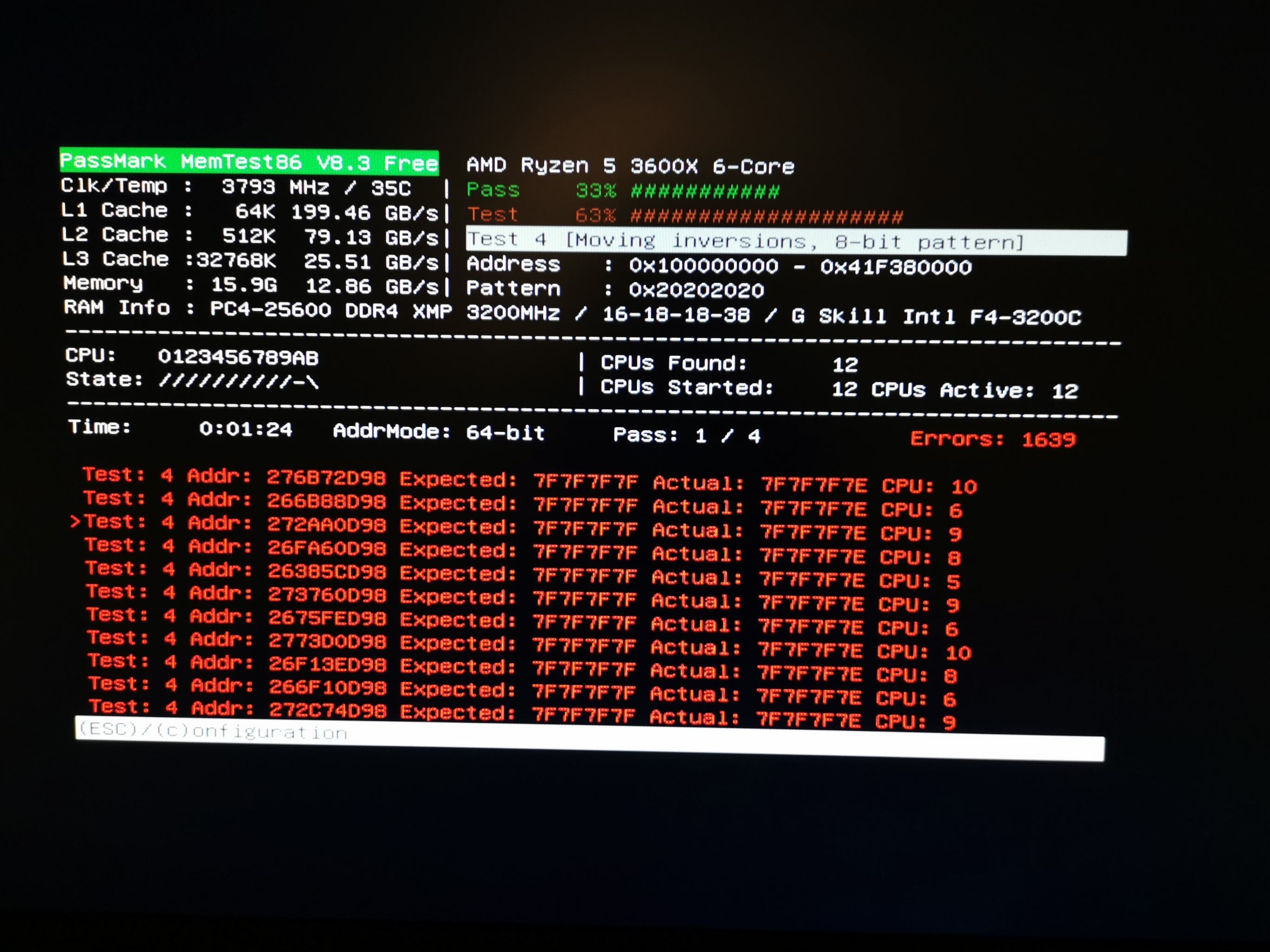 MemTest86 mit XMP wirft fehler auf. XMP aus -> keine Fehler. (ca. 4h)
