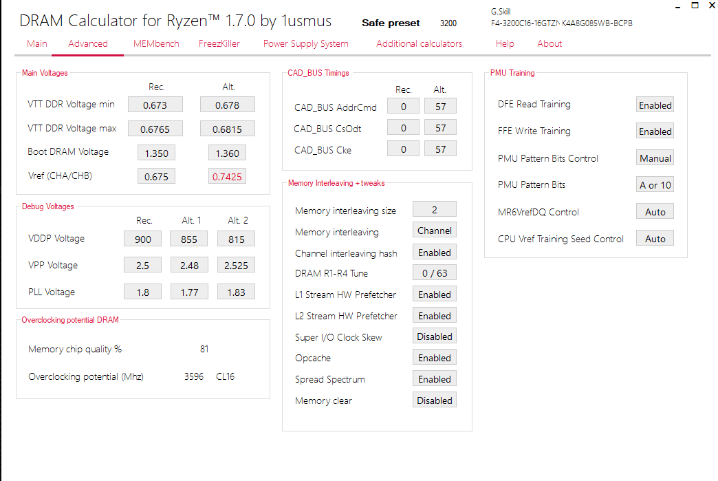 Was die ausgelesenen Werte von TB angeht, würde ich die Die Revision besser noch mal mit dem Lot Code auf dem Modellaufkleber der Module verfizieren. Denn es handelt sich ausgehend von den Spezifikationen vermutlich um einen Auslesefehler von TB. In den meisten Fällen sind auf solchen Spezifikationen eher Samsung 8Gbit C-Die (Lot Code endet auf -10C) als tatsächlich B-Die (-10B). Wenn das System mit spielt erreichen C-Die zwar auch recht problemlos DDR4-3600+, benötigen ganz andere Einstellungen als B-Die.