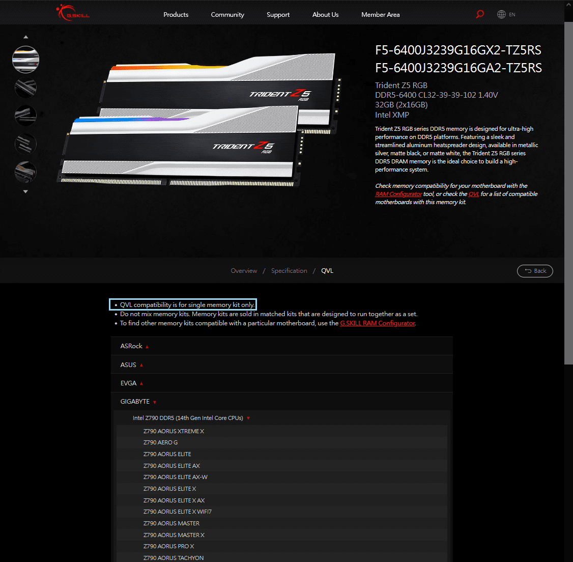 G.SKILL Trident Z5 RGB Serie DDR5-6400. (4x16 GB)
