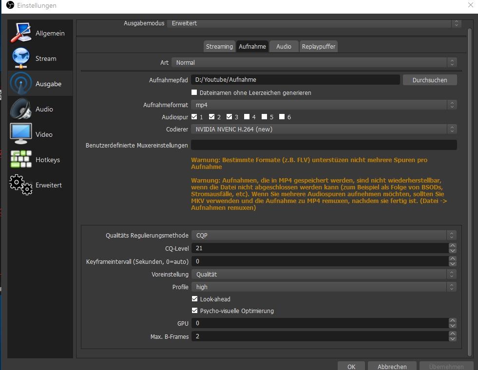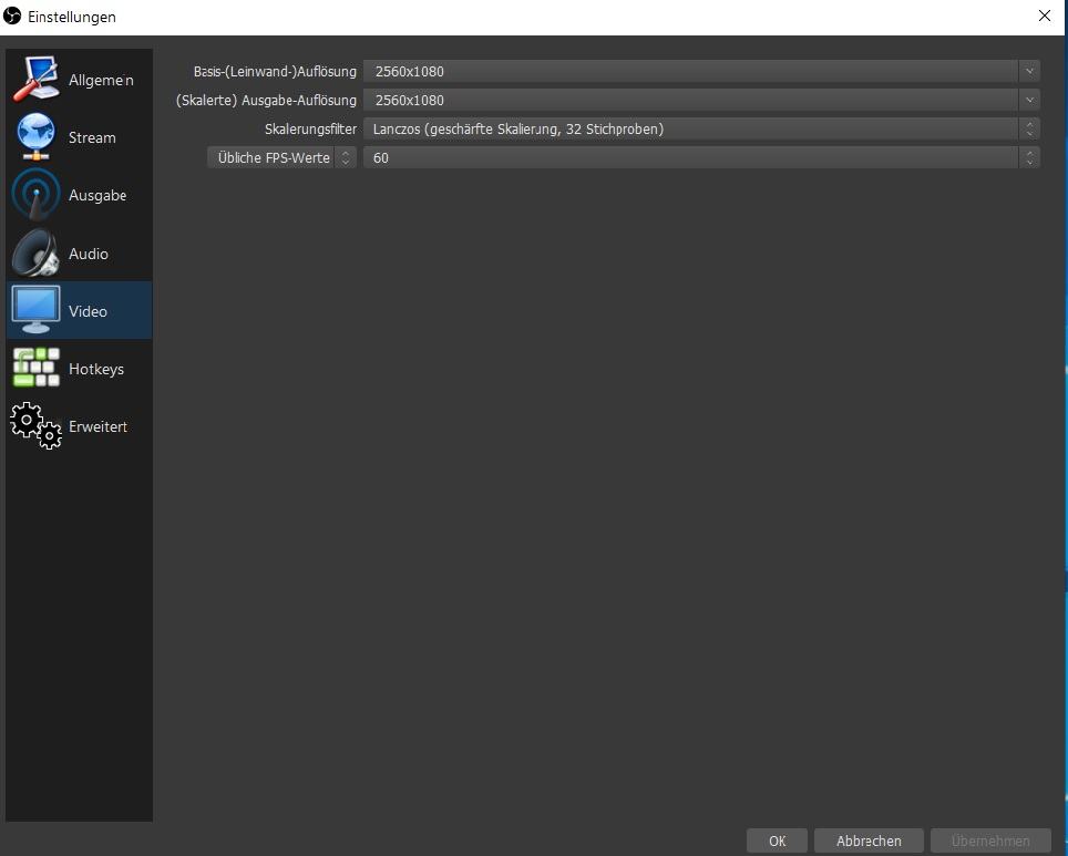 Kannst gerne Bilder deiner Eintellungen hier posten: