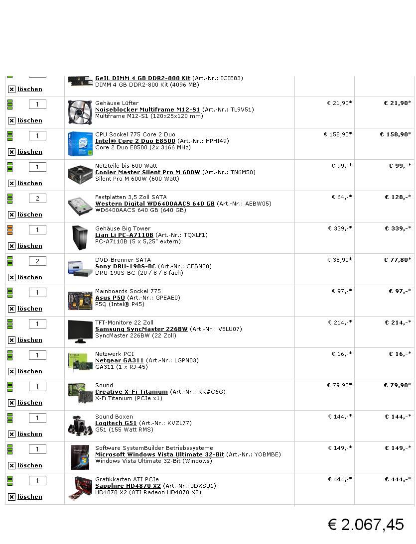 sonst sieht es sehr gut aus... evtl. den Speicher auf 1000/1066 wechseln wegem OC des Dualcore