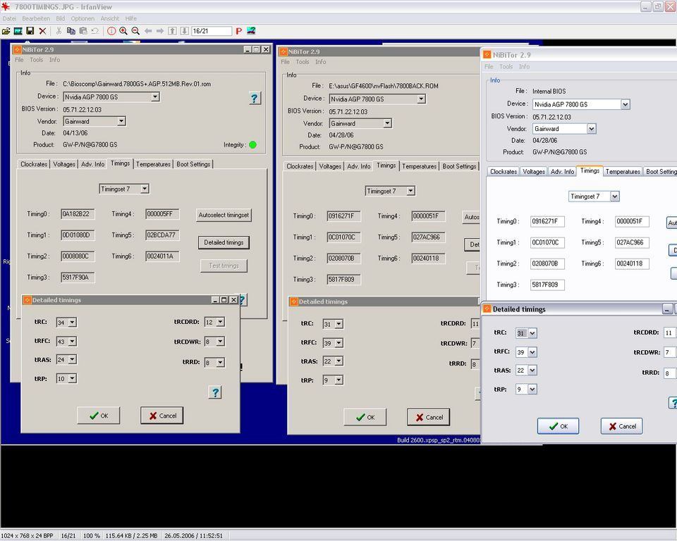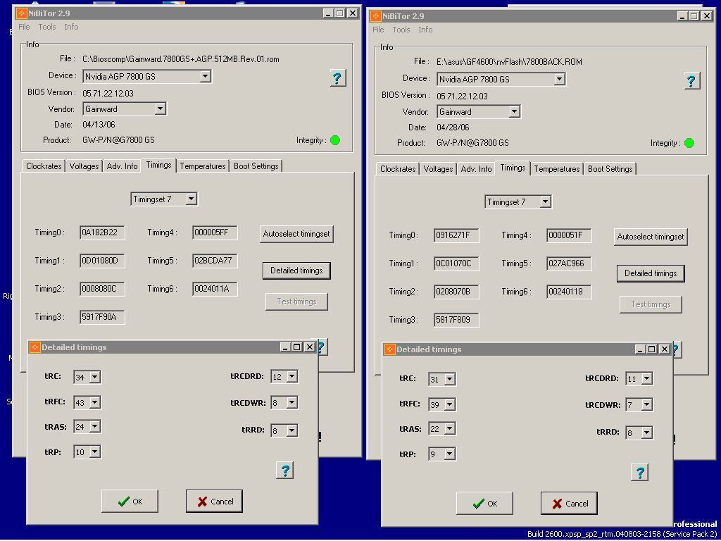 Der einzige Unterschied besteht im Timingset7 (nachzusehen über NIBITOR), wo das eine BIOS etwas schärfere Werte hat (das rechte auf meinem Screenshot - welches auch das auf meiner Karte ist).