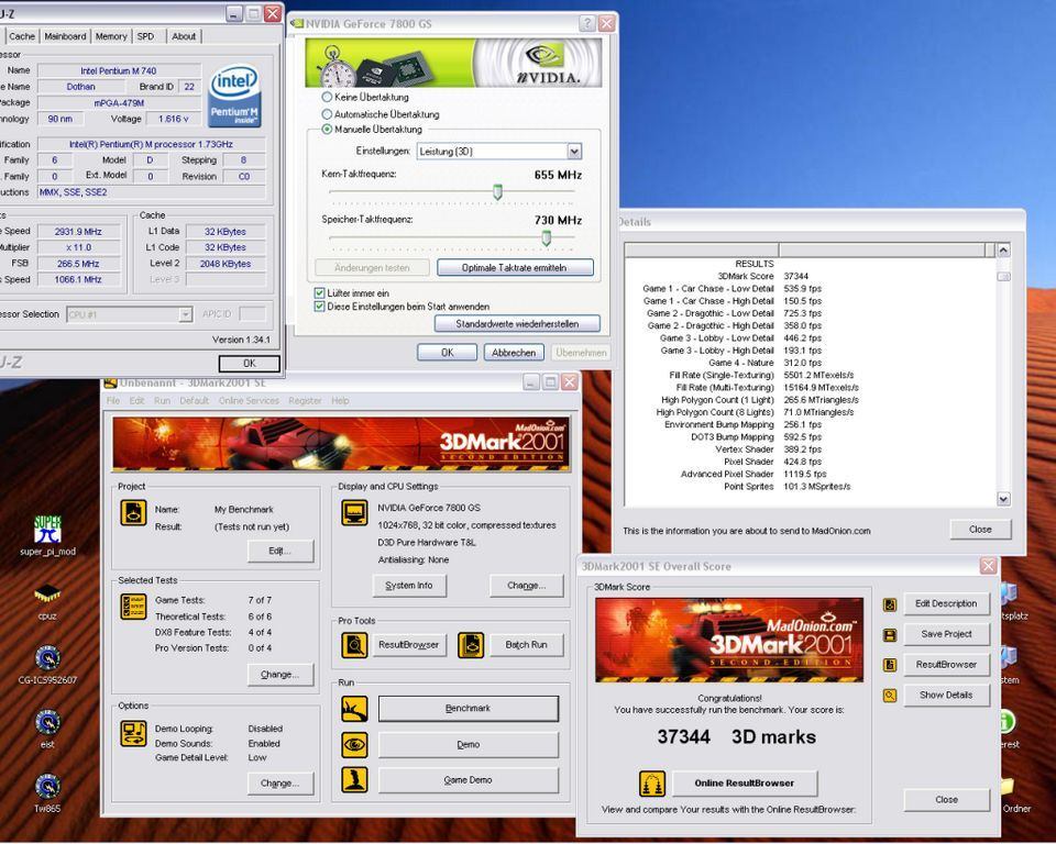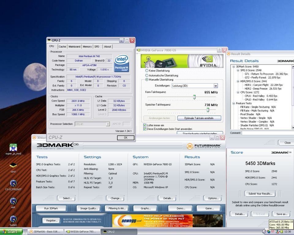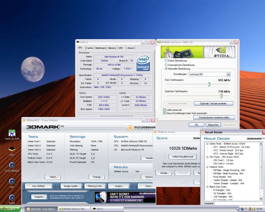 @angelo bracone, ähm cento natürlich. Hab mal ne Schippe nachgelegt auf futuremark.com :teufel: mit 1,44V. Meine GPU wird aber deutlich vom Ram ausgebremst hab ich das Gefühl, bei den Aussentemperaturen sind nicht mal 750 auf dem Speicher stabil drin im Moment. Ich hab aber keine echten 725Mhz auf dem Kern gehabt, sondern "nur" 675Mhz und eben 50Mhz Geotakt. Das wertet der 3DMark05 scheinbar als reelle Taktfrequens von 725... :shot: