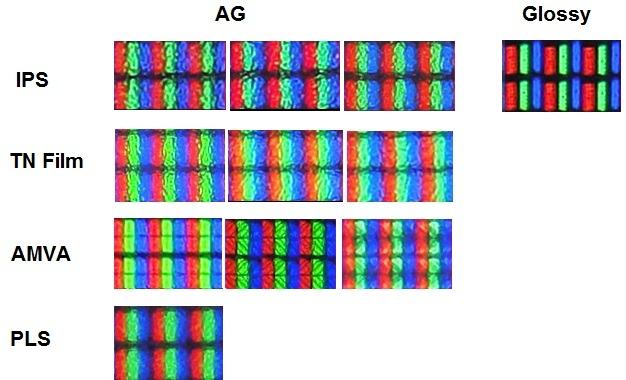 Die Pixelstruktur ist bei allen 3 Displayarten identisch, es wir eine LED-Beleuchtung mit Pixelgatter verwendet.