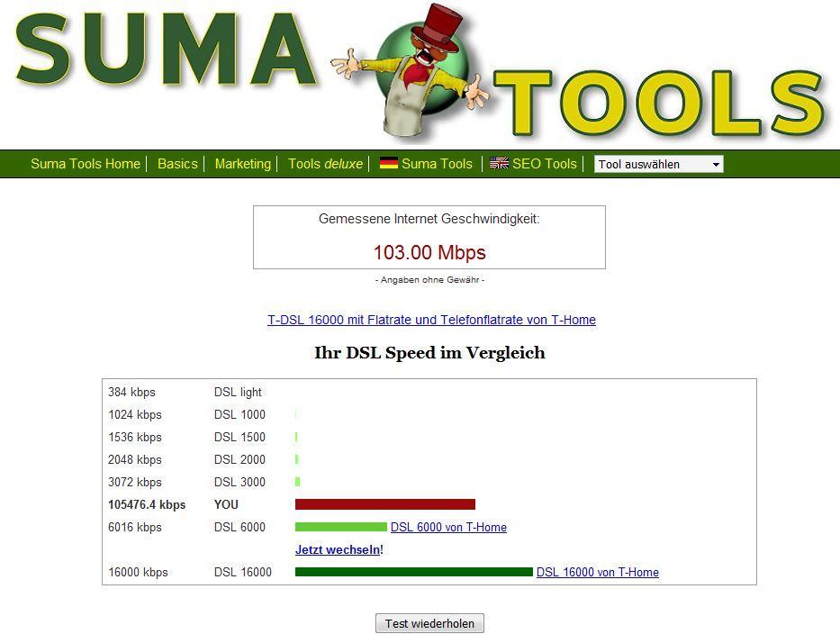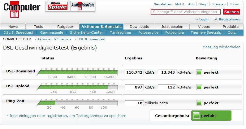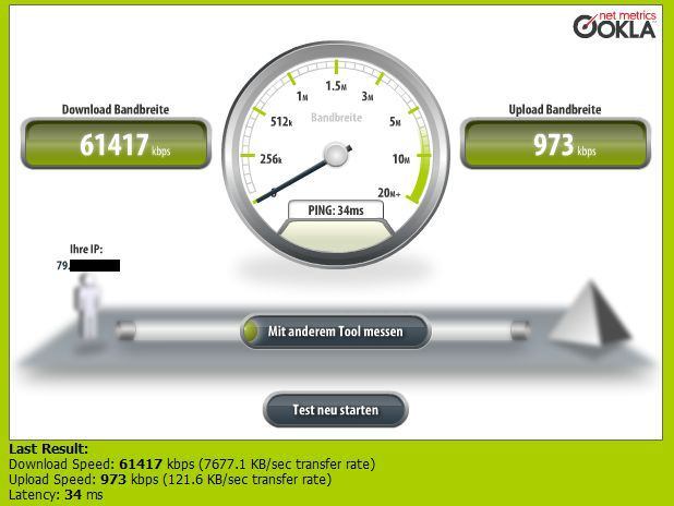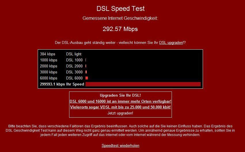 Danach kommen dann die tollsten Ergebnisse bei verschiedenen DSL-Tests (siehe Bilder).