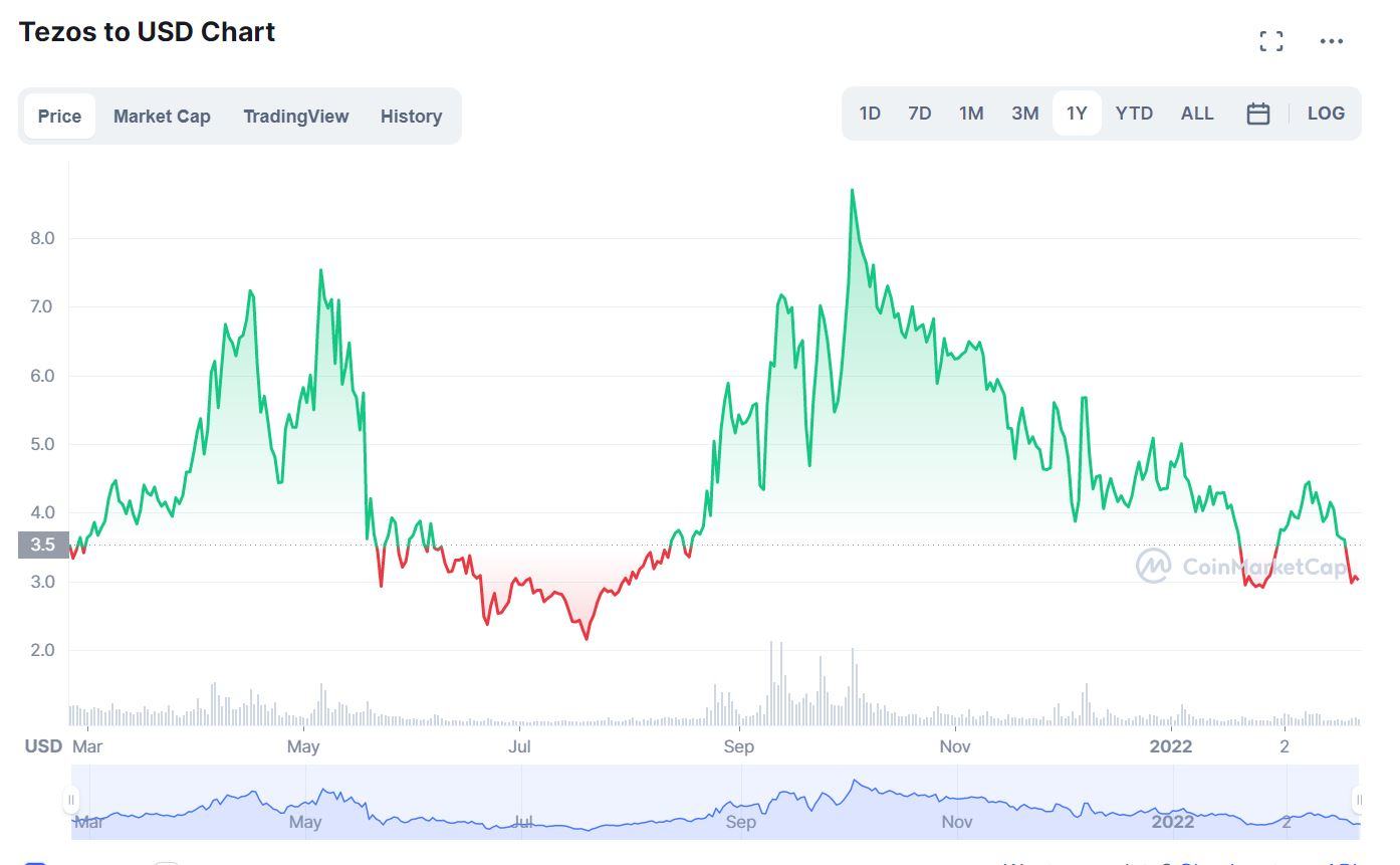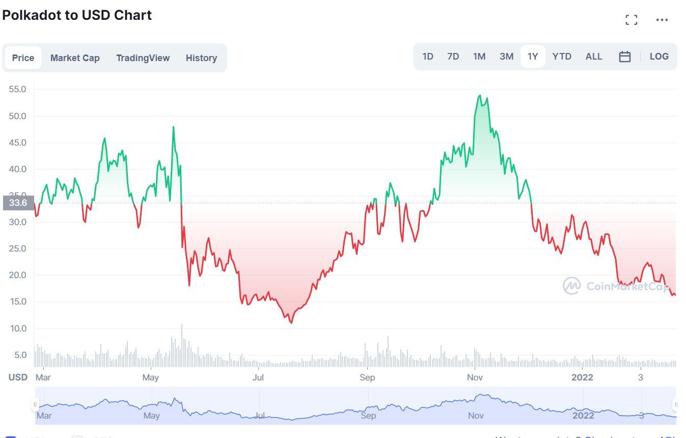 Anbei mal der Jahreschart von BTC, XTZ und Dot.