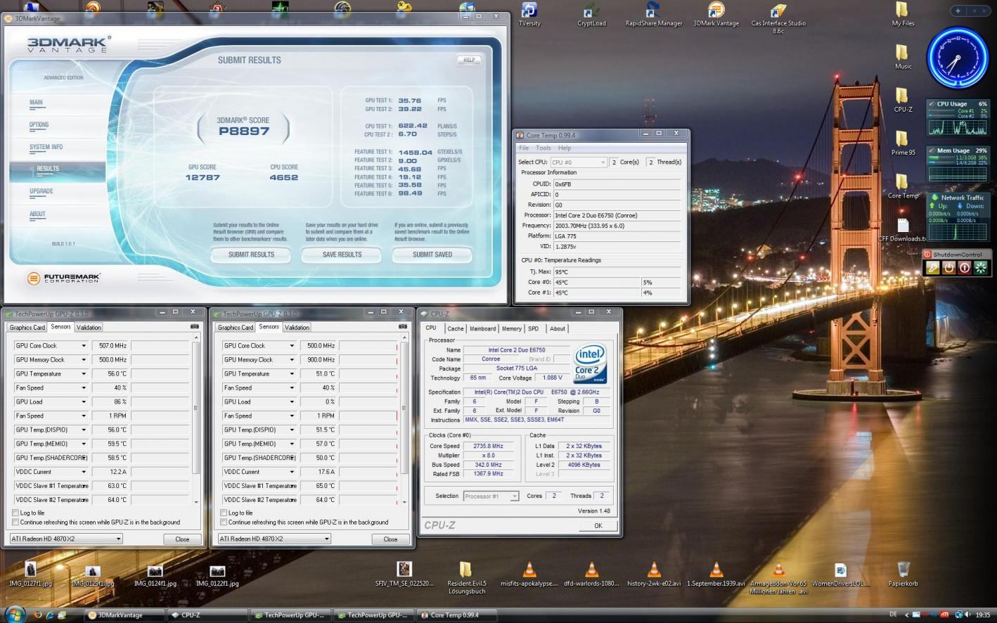 ich habe zwar keinen X2 graka aber dafür Q9650@4,2ghz und meine wassertemps