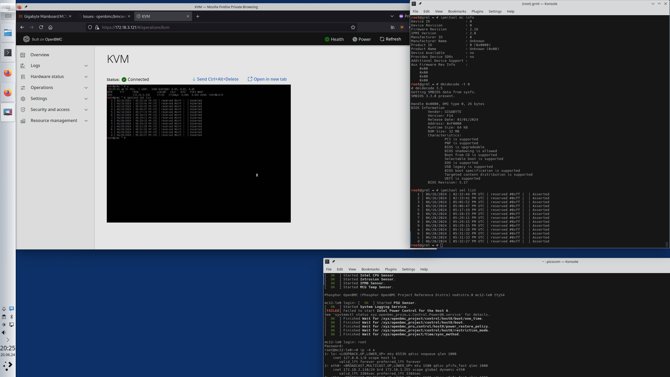 Ich bin gerade am Reverse-"Engineeren" der GPIO PINs des BMC, und dabei hab ich es irgendwie geschafft, den Host zu bricken. Konnte ihn nicht mehr mit meiner etablierten Methode zum Booten bewegen, ganz egal, welchen Eiertanz ich mit dem OpenBMC-Build rund um die GPIOs aufgefuehrt habe. Reboot - half nix. Power Cut - half nix. Factory Reset (nun also getestet und fuer funktionierend befunden btw