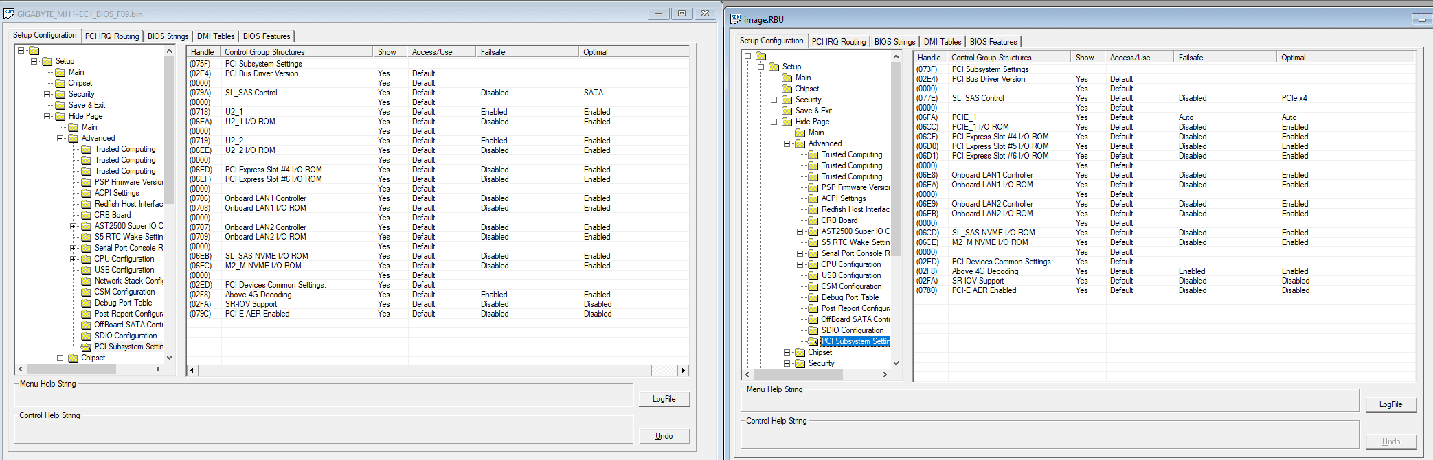 Aktuell hab ich mal ASPM auf L0s_force gestellt und die PCIe Einstellungen etwas überarbeitet. Optionen für U2_1 und PCIe Slot #4/#6 I/O-ROM brauchen wir grad nicht.