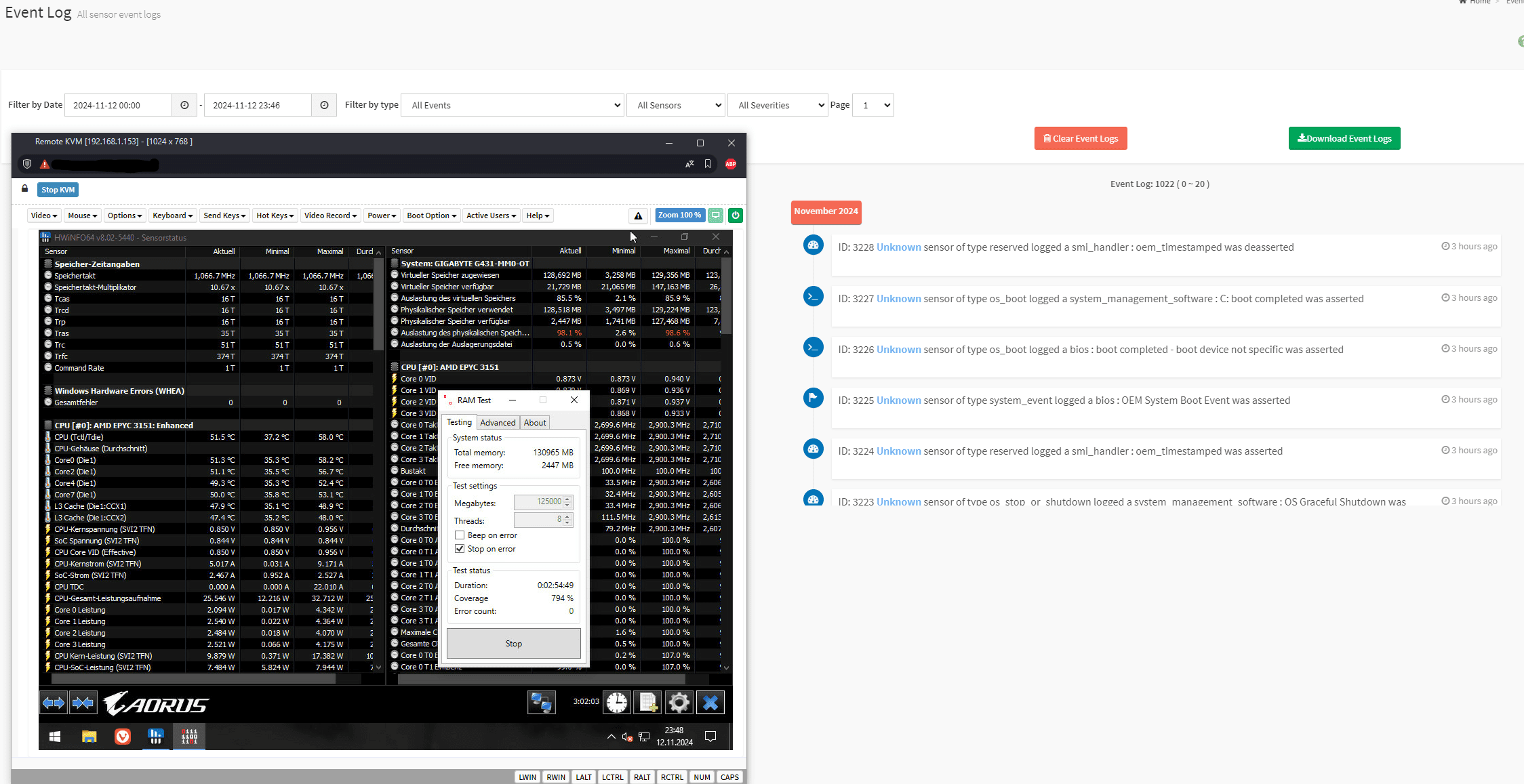 Bei mir läuft mittlerweile seit ~20h Karhu RAM Test ohne einen Fehler. WHEA zeigt auch keine ECC Fehler mehr und das Web Interface vom BMC meldet auch nichts.