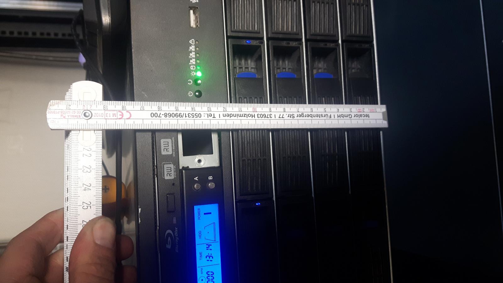 Das wäre mir auch neu. Keine Ahnung wo Du das mit dem 2,54cm her hast? 1 HE ist nicht gleich 1 Zoll.Die höhe eines Rack wird in HE angegeben und im Maß Zoll="