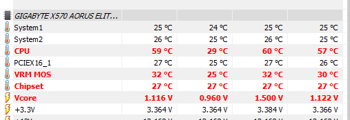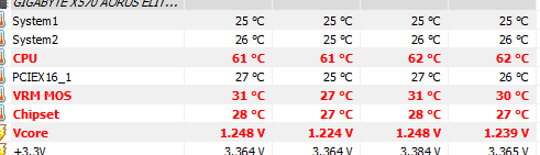 | VRM | 7 reale Phasen (6+1), PWM-Controller: ISL69138 (max. 7 Phasen) | 14 reale Phasen (12+2), PWM-Controller: XDPE132G5C (max. 16 Phasen) | 8 reale Phasen (6+2), PWM-Controller: IR35201 (max. 8 Phasen) | 8 reale Phasen (6+2), PWM-Controller: IR35201 (max. 8 Phasen) | 16 reale Phasen (14+2), PWM-Controller: XDPE132G5C (max. 16 Phasen) | 7 reale Phasen (5+2), PWM-Controller: ISL69147 (max. 7 Phasen) | 8 reale Phasen (6+2), PWM-Controller: IR35201 (max. 8 Phasen) | 7 reale Phasen (5+2), PWM-Controller: ISL69147 (max. 7 Phasen) | ||