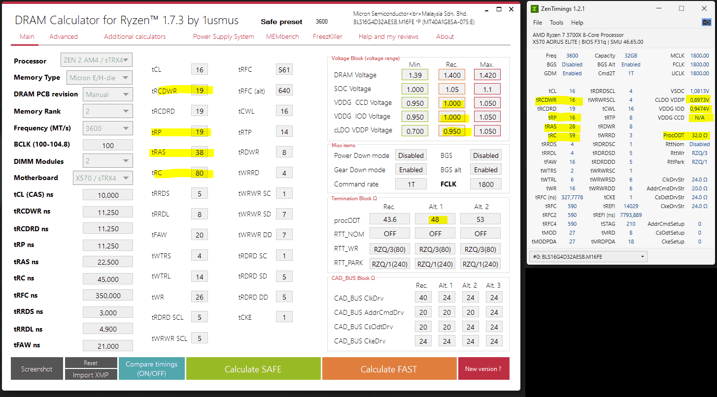 Diese Werte können direkt im Bios oder via SIV eingetragen werden.