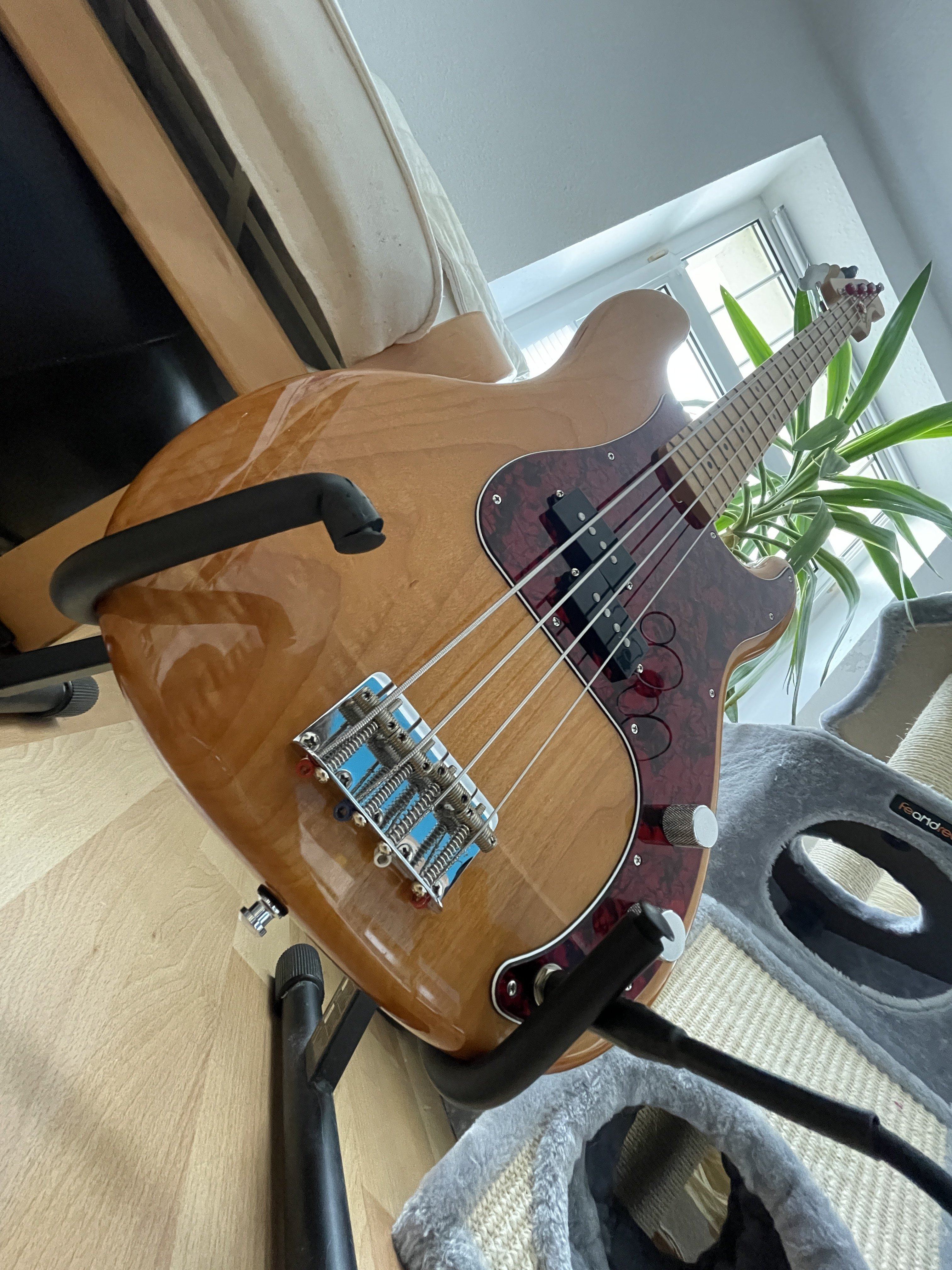 Nebenher hab ich noch zwei Squier-Bässe aus meiner Anfangszeit, mittlerweile aber mit neuer Elektronik, Bridges und Fender bzw. Seymour-Duncan PU's. Das hat die Spielbarkeit und den Klang doch für meine Bedürfnisse positiv beeinflusst - für die typischen Kneipen- und Stadtfest-Gigs reicht das allemal.