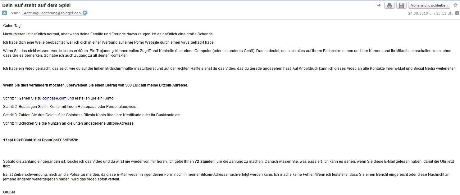 Normalerweiße würde ich solche Dinge ignorieren, aber was mich dann echt etwas überrascht ist, dass, das Passwort das die/derjenige mir in der E Mail nannte, mein Passwort auf allen anderen Seiten wie Ebay, Amazon usw. ist