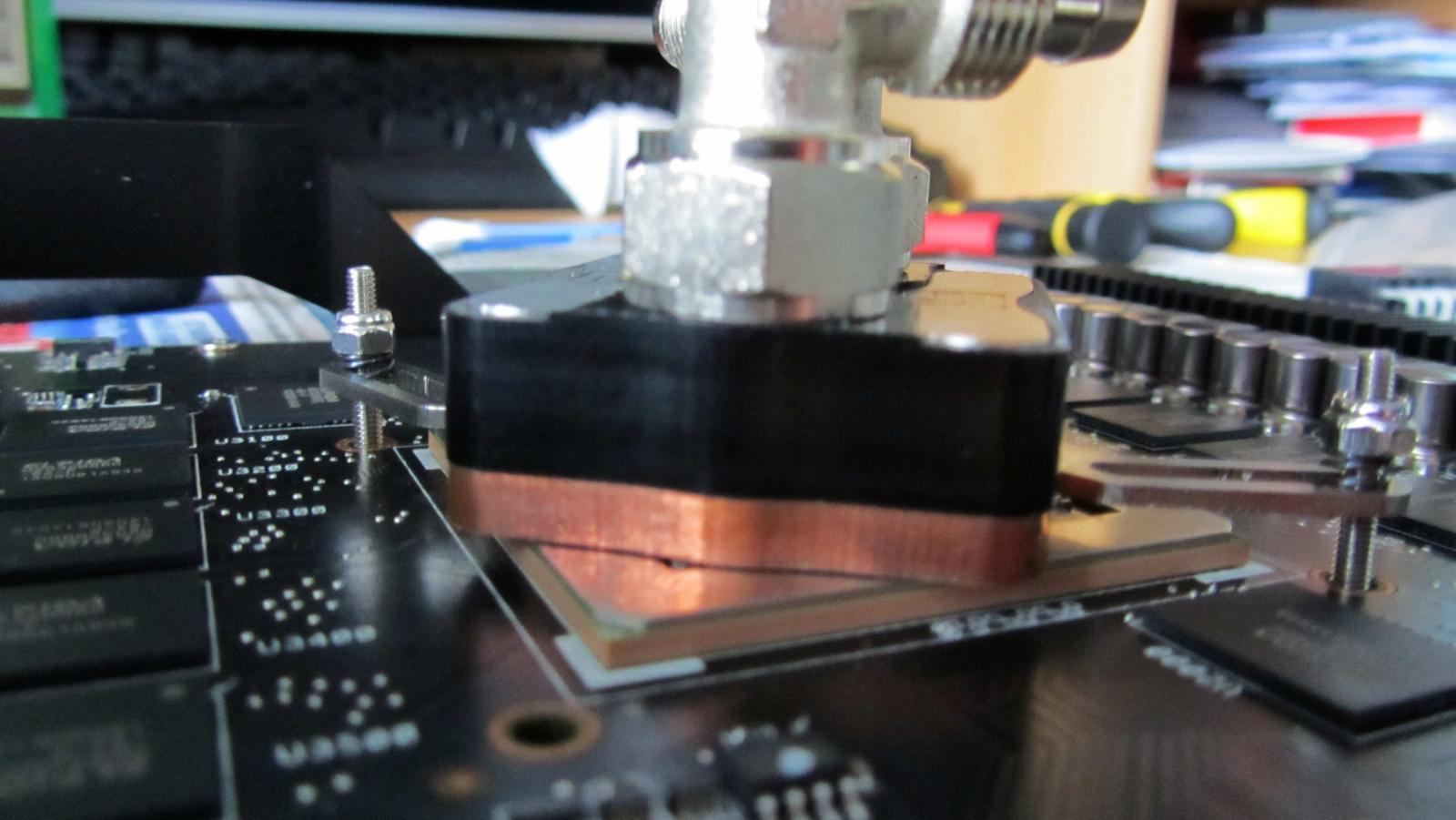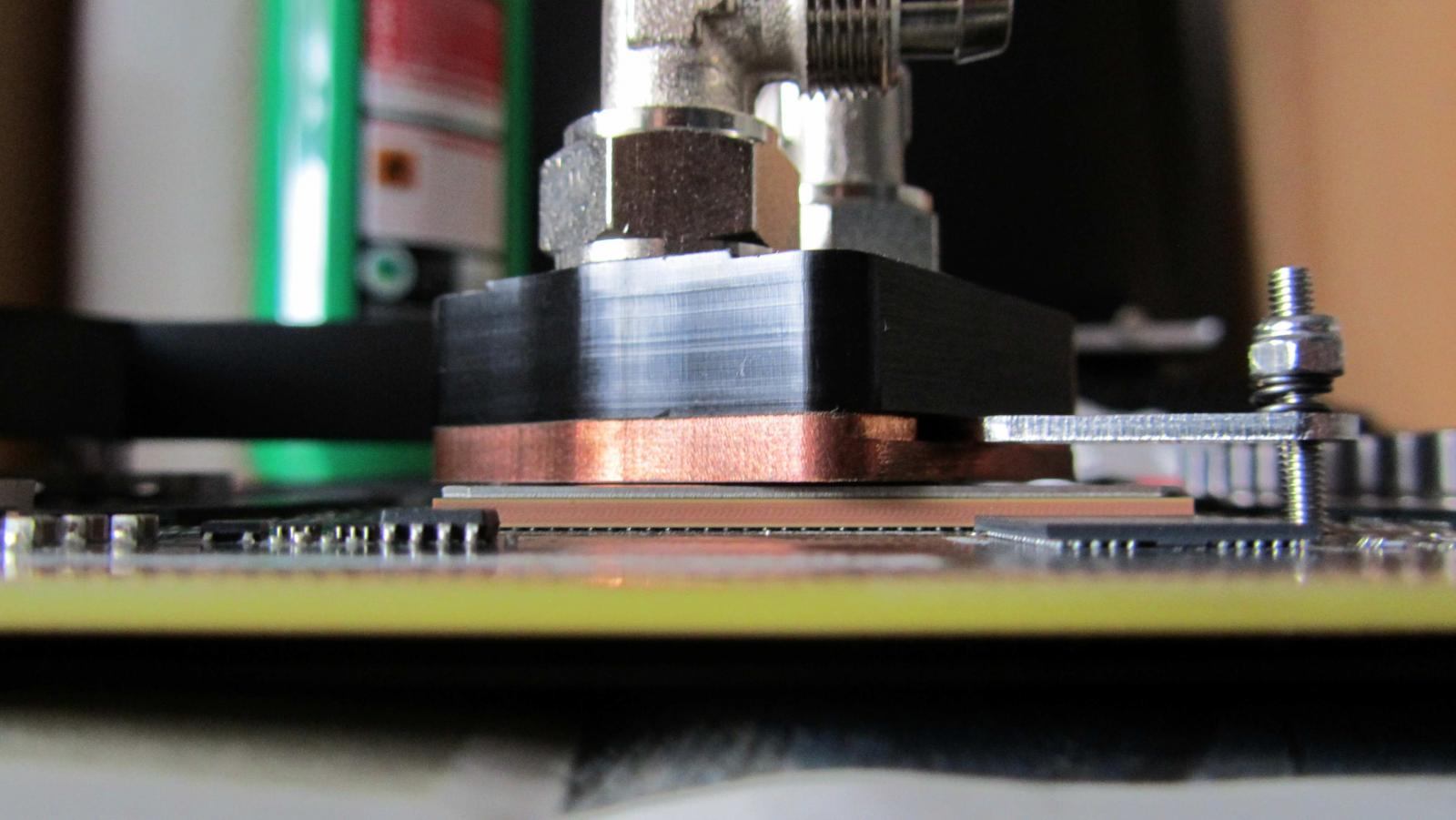 Beim Anziehen der Schrauben muss wohl der Kühler etwas verrutscht sein und lag nicht mehr ganz auf dem Die auf.