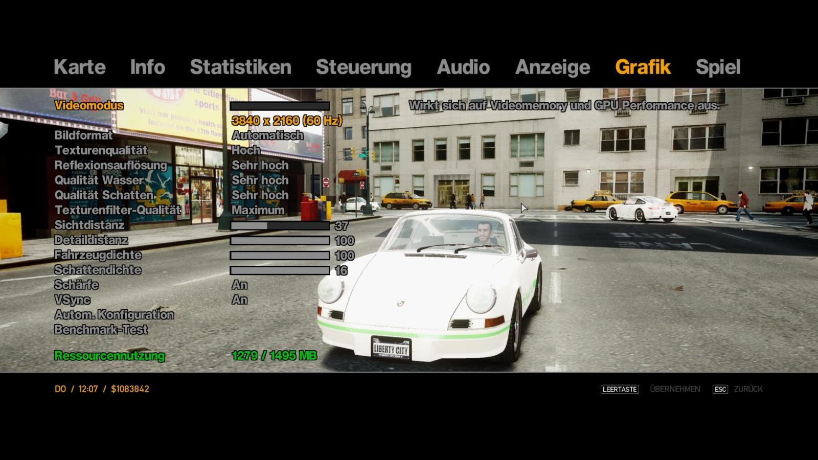 Die Grafik ist eigentlich perfekt für mich, jedoch sind zum Beispiel weiße Fahrzeuge viel zu hell, da bringen auch die Helligkeitseinstellungen in GTA IV selbst nichts.