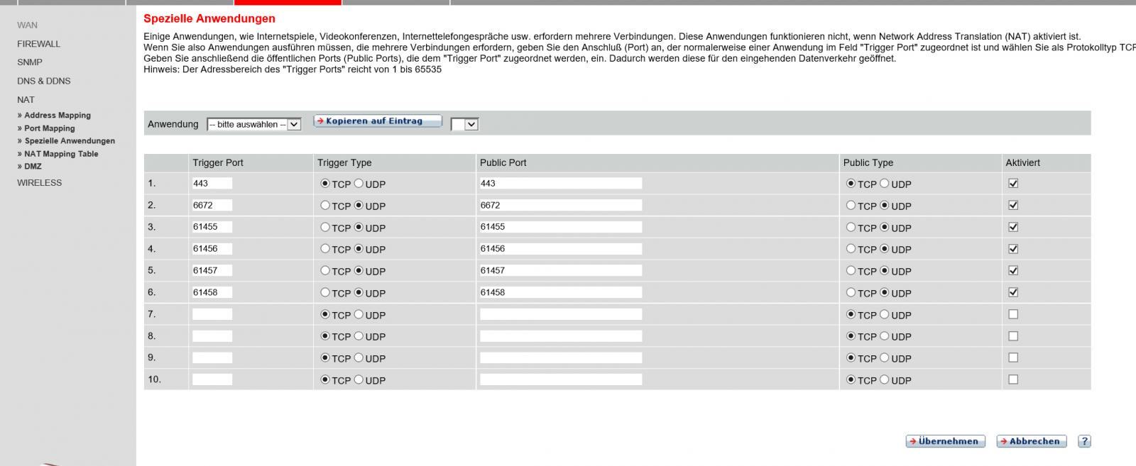 Die Ports für GTA V werden wie auf der Supportseite (oben) gefordert wie folgt geöffnet. Stimmt das so?