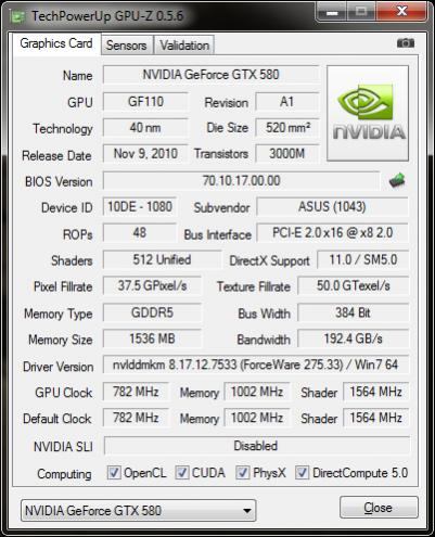 Ich hatte vor meine GTX 470 durch eine GTX580 DCII/2DIS von Asus zu ersetzen, welche ich schon hier habe. Dieses Karte ist im Vergleich zu meiner alten GTX 470 grottenlangsam. Mache ich etwas falsch oder ist dem so ?