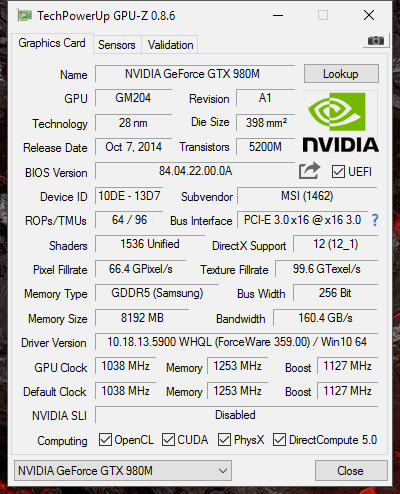 Und die Verbrauchsangaben stimmen auch nicht... es gibt die GTX980 mit 150W (MSI GT72S 6QF), 180W (Clevo SLI Geräte) und 200W (Clevo). Welche im GT80S 6QF SLI verwendet wird, weiss ich aktuell noch nicht.