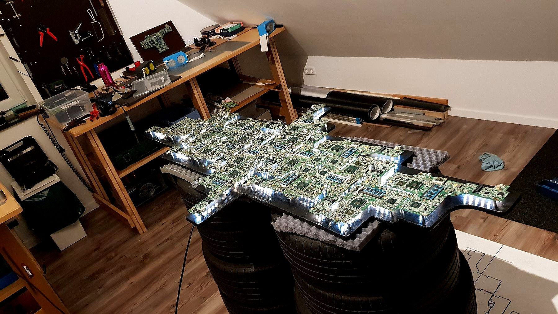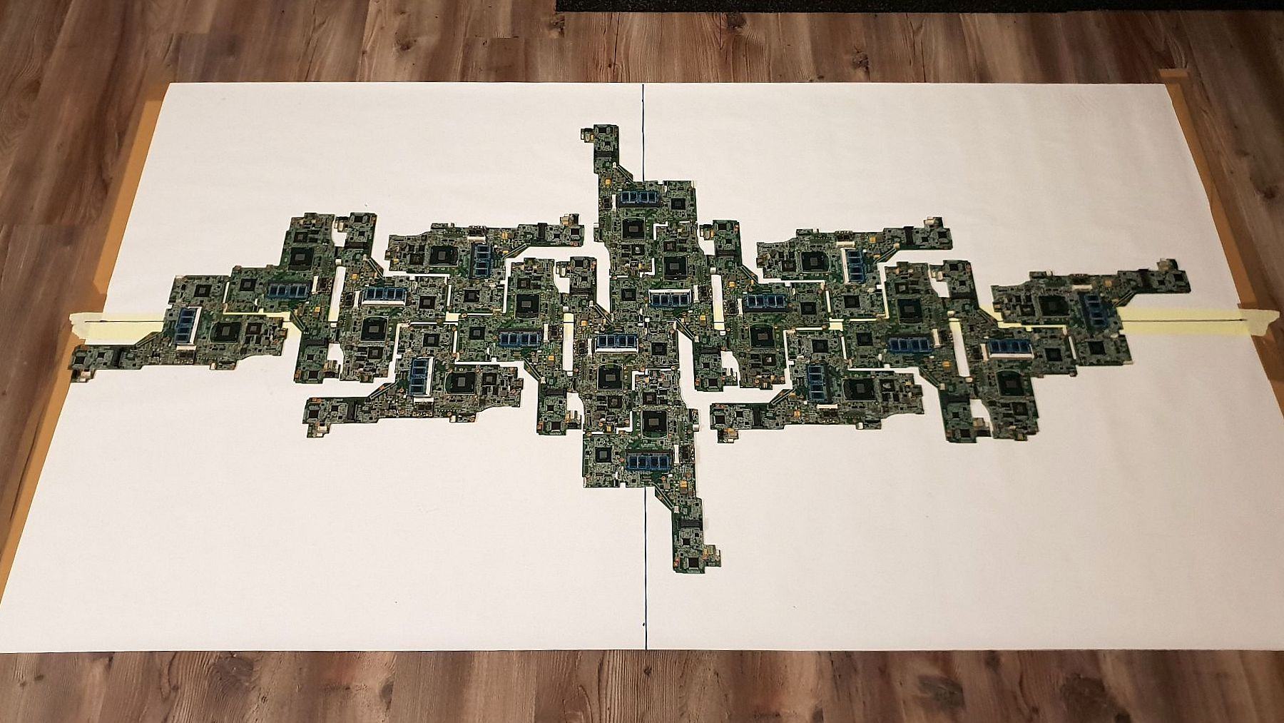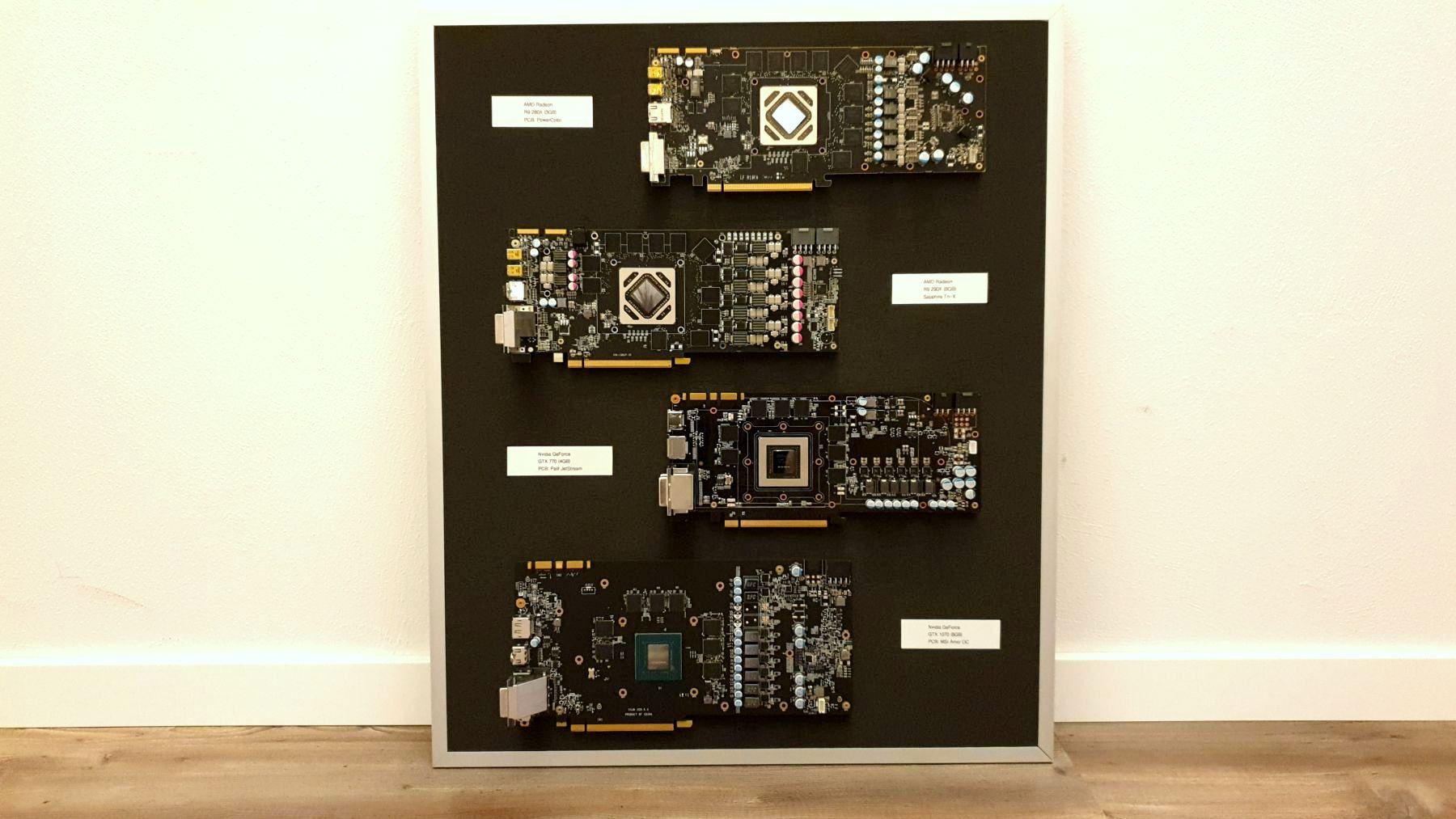 Im ersten Beispiel wollte ich nur die nackten PCBs zur Schau stellen. Damit sich auch (außenstehende) Leute einen Eindruck von der "tatsächlichen" Hardware verschaffen können, die sonst kaum eine Vorstellung davon haben, wie es unter dem GPU-Kühler aussieht. Die meisten "normalen" Leute wissen zwar grob wie ne GPU aussieht und wozu man sie braucht, aber wie es unter dem Kühler aussieht ist dann eher Neuland für sie, geschweige denn was die einzelnen Komponenten auf dem PCB zu suchen haben. Die Erfahrung zeigt aber, dass das Interesse durchaus groß ist, weil die meisten Leute sowas nun mal nicht jeden Tag sehen. Grundsätzlich ist das Feedback durchweg positiv. Nicht nur unbedingt, weil es Hardware ist, sondern weil es einfach mal was anderes ist.