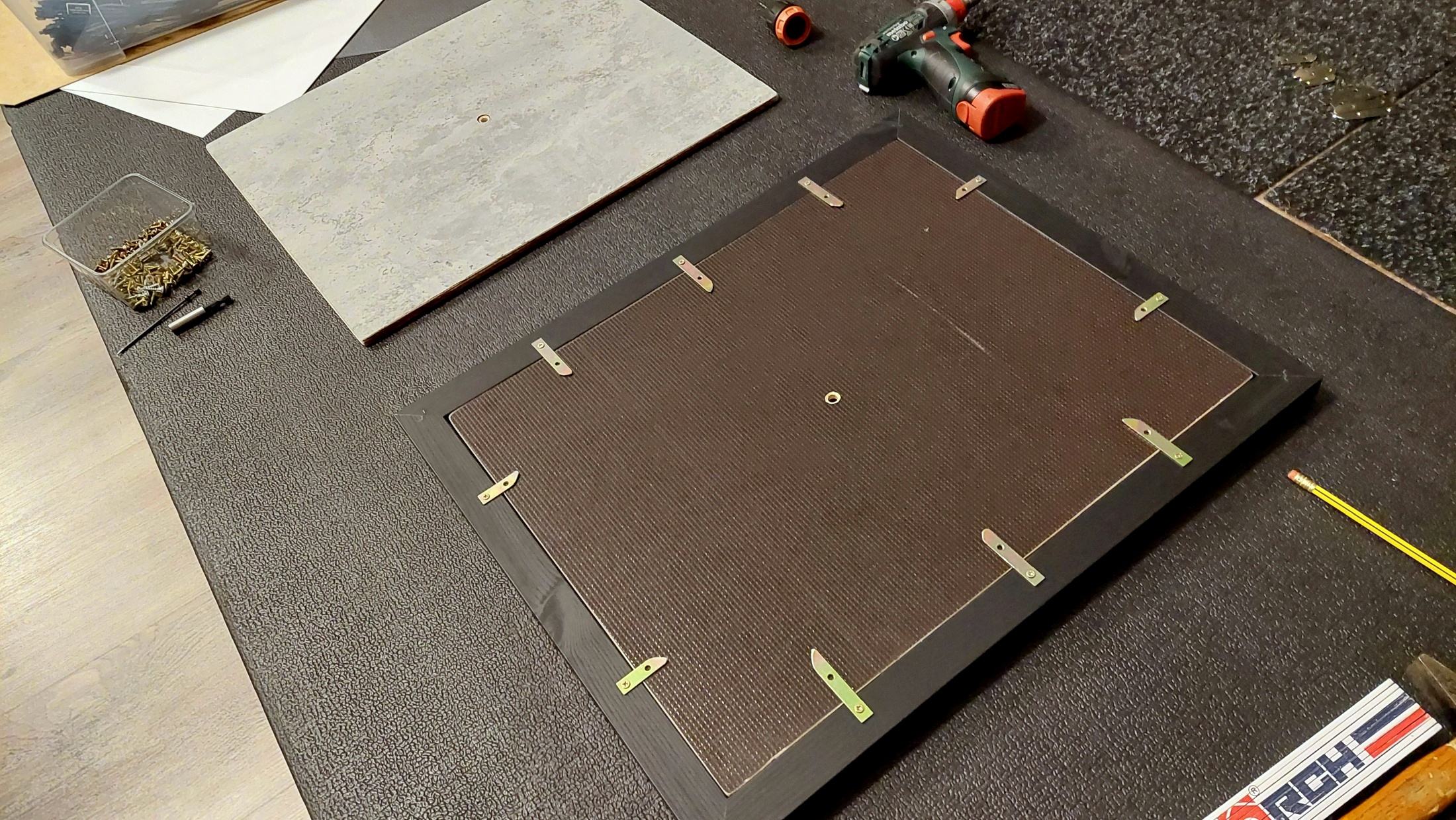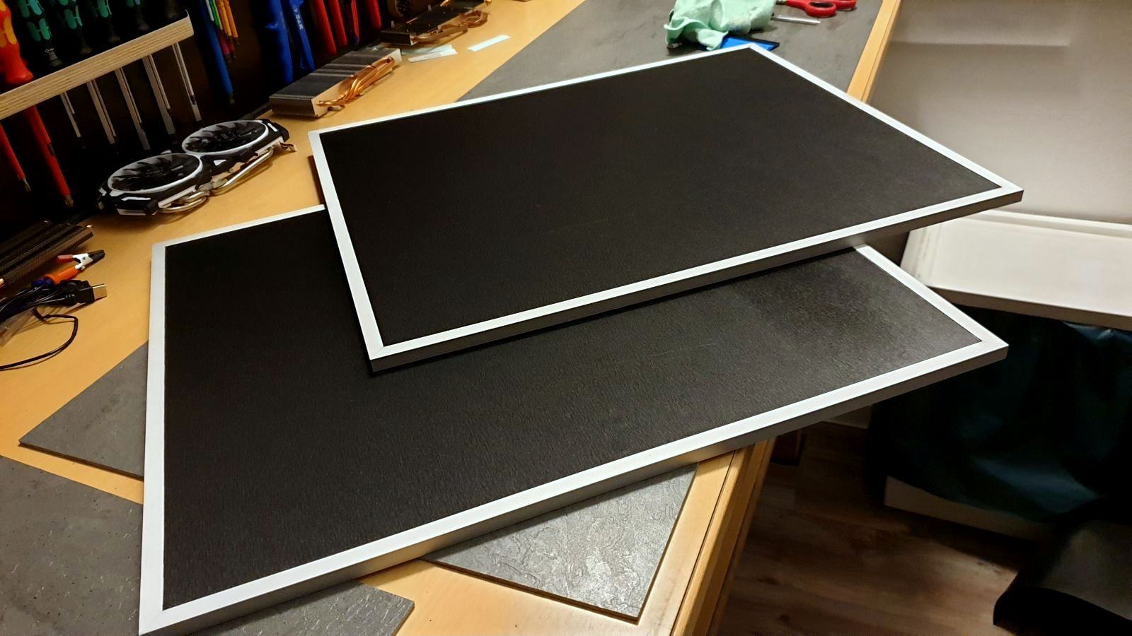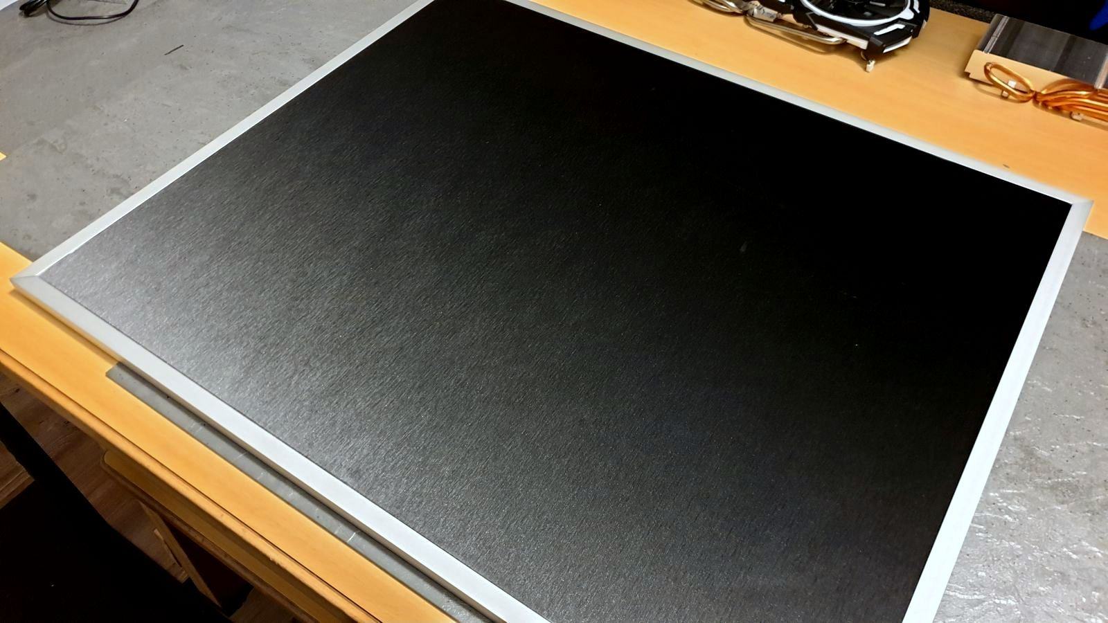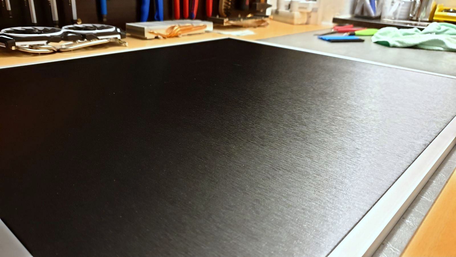 Für das erste Bild habe ich mir zwei AMD und zwei Nvidia Karten besorgt. Als Basis wurde zuerst das Bild mit schwarz-gebürsteter Alu-Folie vorbereitet: