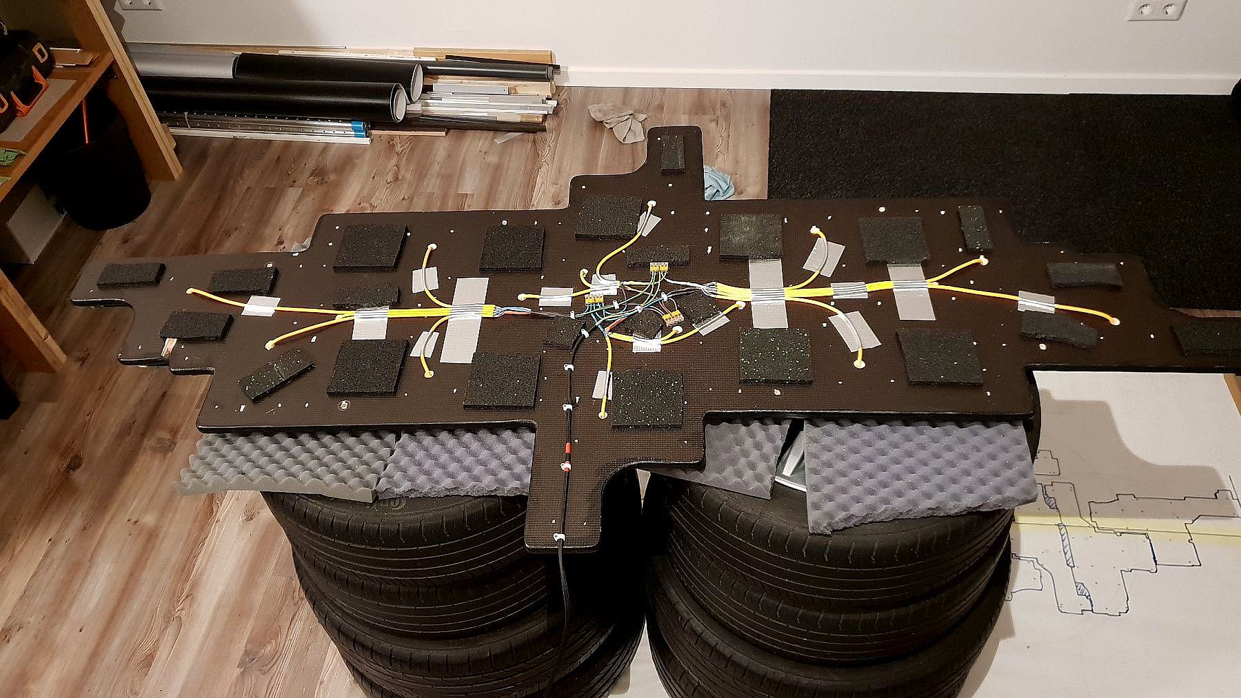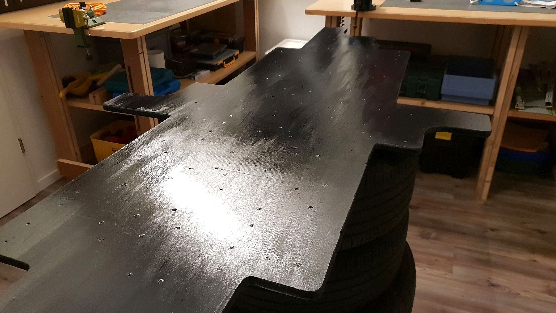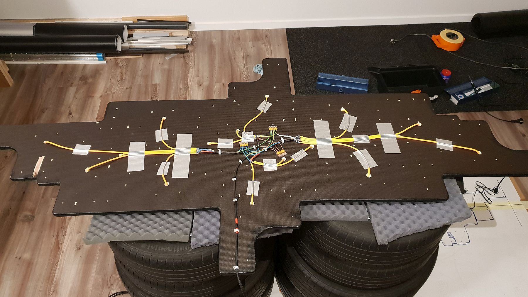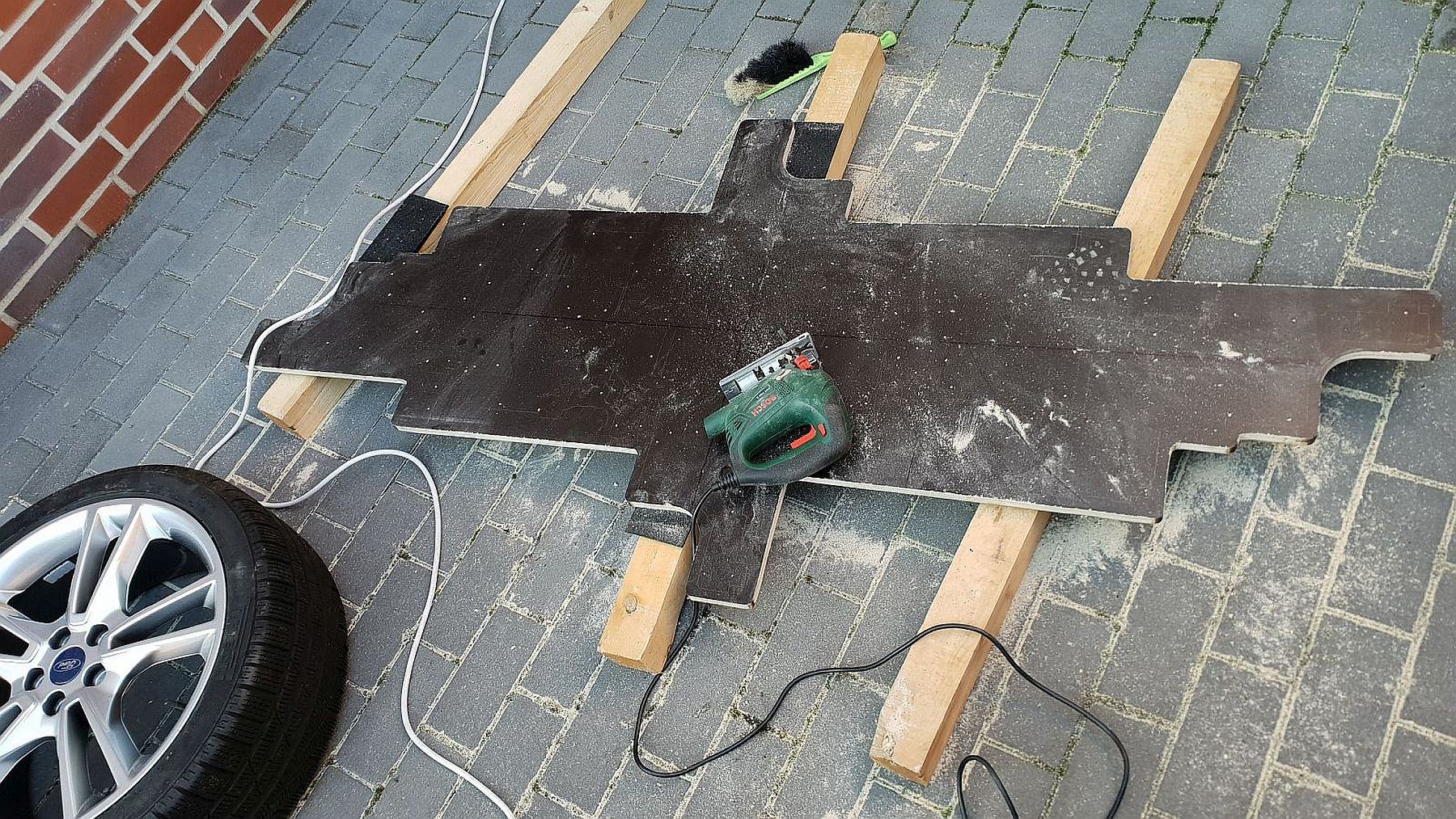 Für das erste Bild habe ich mir zwei AMD und zwei Nvidia Karten besorgt. Als Basis wurde zuerst das Bild mit schwarz-gebürsteter Alu-Folie vorbereitet: