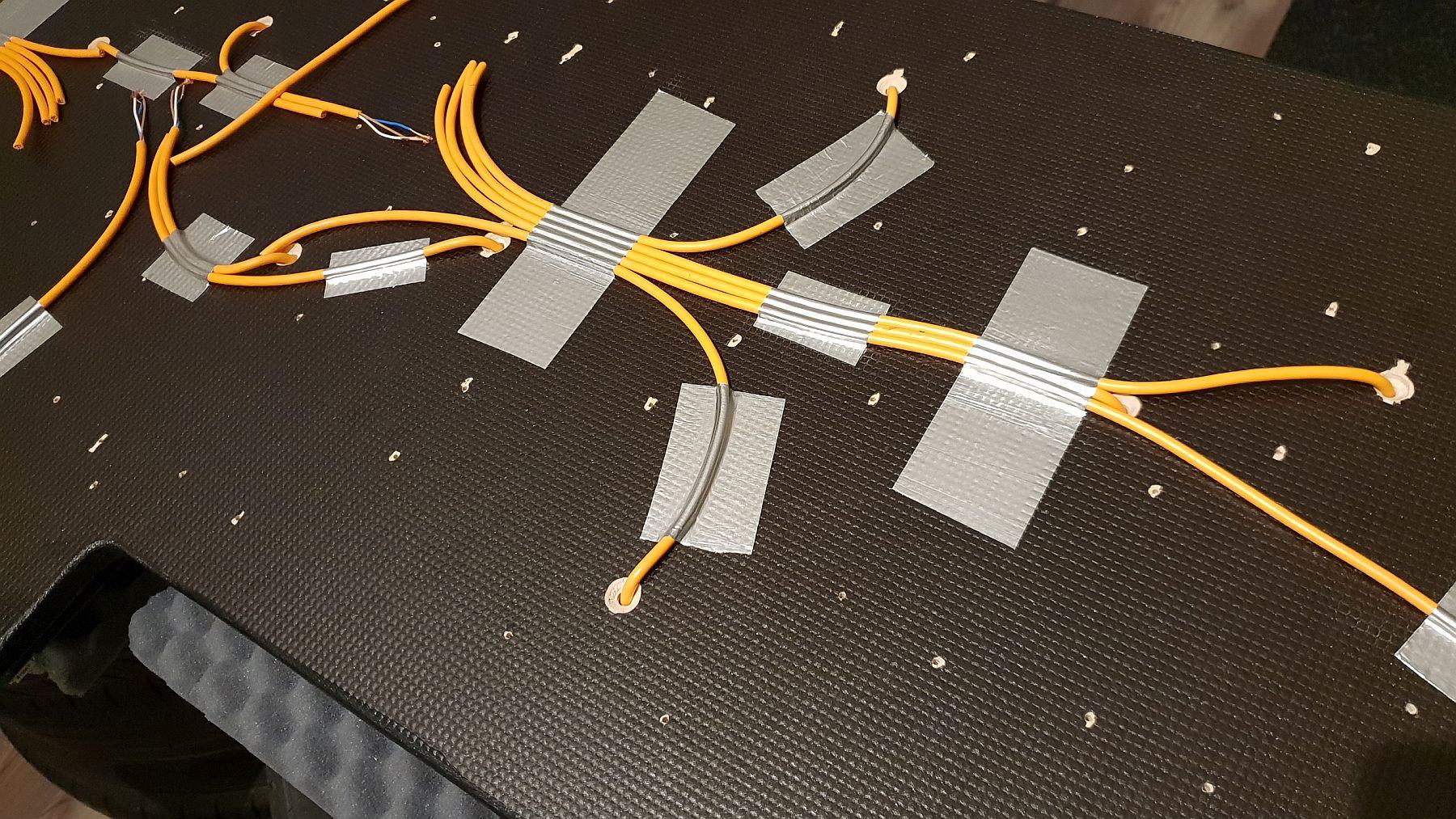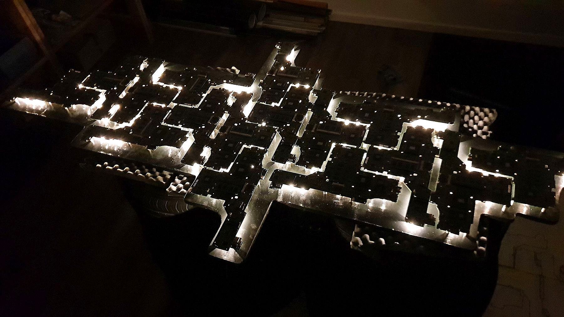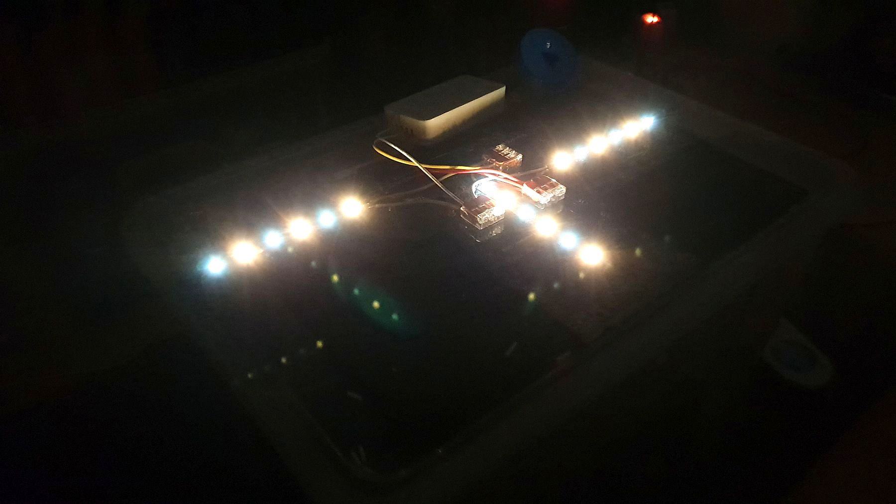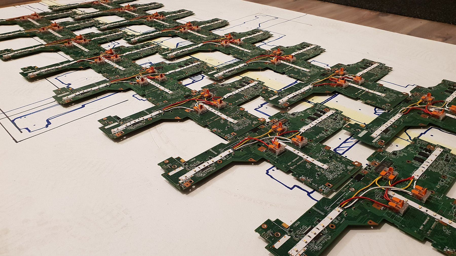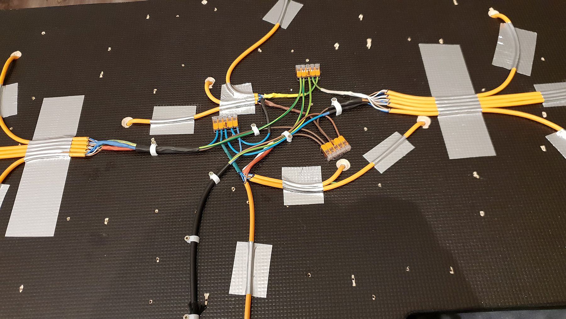Der Rest, der nicht (PCB) oder nur teilweise leuchtet (Backplate) ist, wurde mit LED-Stripes ausgestattet. Bitte nicht hauen für meine Lötkunst oder das Kabelmanagement. Heute, nach etlichen Jahren Bastel-Erfahrung, würde ich einige Sachen etwas anders machen. Grundsätzlich aber funktioniert die Beleuchtung heute noch.