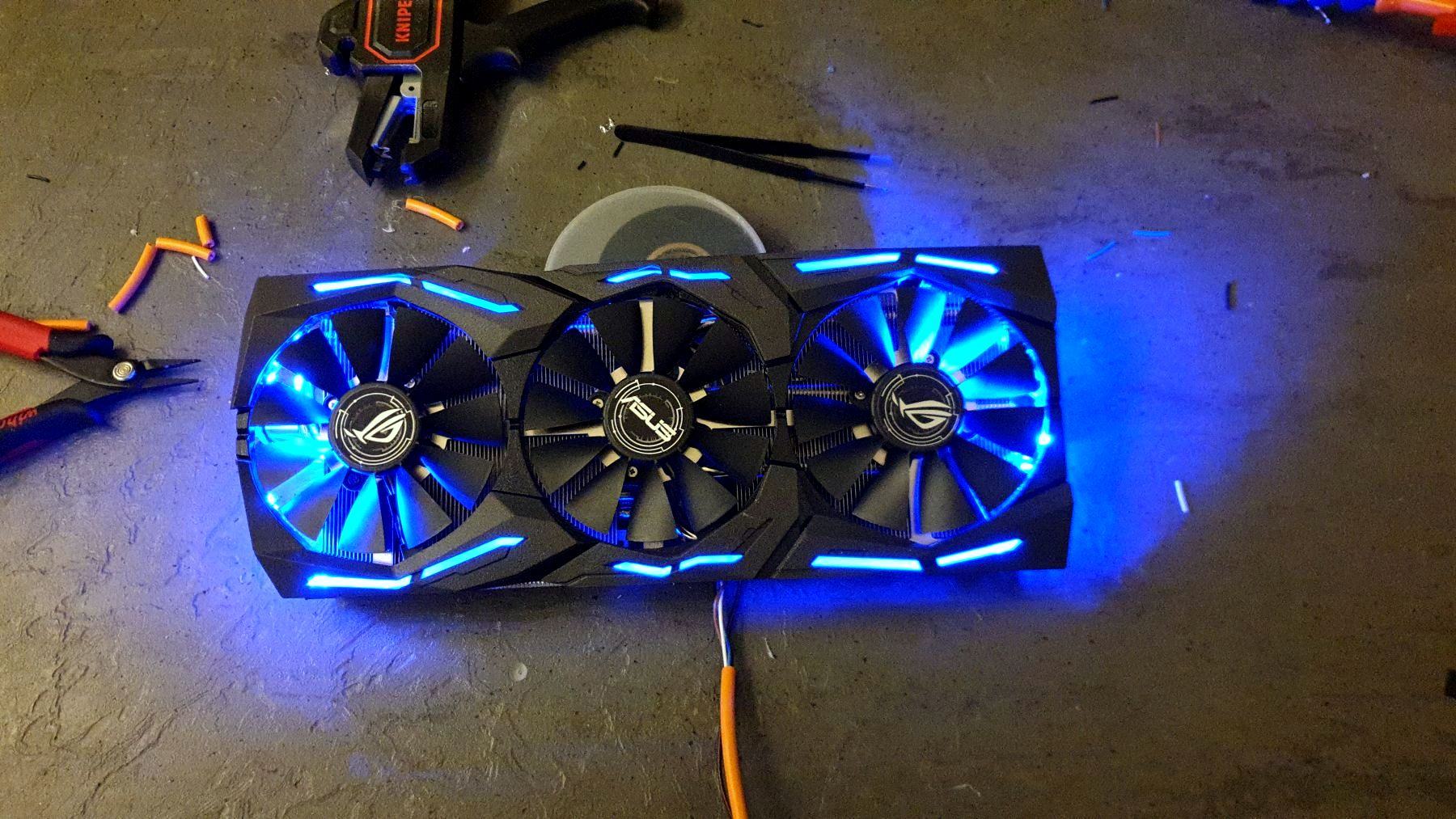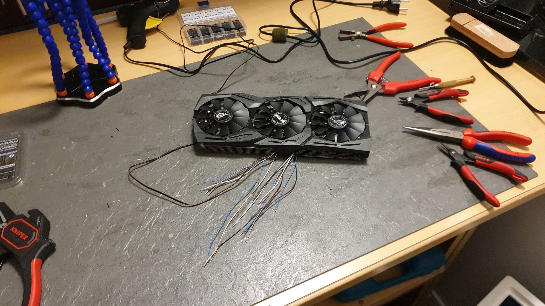 Für die ASUS Karte werde ich einen neuen Beitrag starten, da der Umfang an Arbeit hier deutlich höher war. Alleine schon, weil man sowohl Lüfter steuern, als auch die RGB-Beleuchtung mit dem PC verbinden/ synchronisieren konnte und das anhängig voneinander. Ist Kabel-technsisch deutlich mehr Gefummel, aber technisch jetzt nicht großartig anspruchsvoller. Nur, wenn man das gerne nachbauen möchte, muss ich deutlich mehr Text dazu schreiben und das wird mir jetzt für einen Beitrag zu viel.