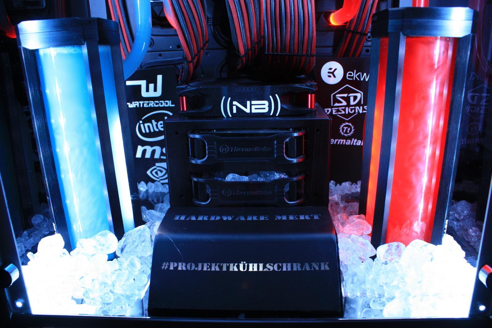 Das System ist mein privater Rechenknecht und deshalb habe ich ein paar Dinge wie z.B. die Farbgebung genau auf mein Gefallen hin angepasst. Deshalb nicht wundern, auch wenn das Projekt „Kühlschrank“ heißt, wenn nicht alles darauf abgestimmt ist. Kühlschrank beschreibt den Tower und die Kühlleistung des Projekts ��