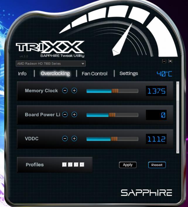 Ich besitze eine Sapphire HD 7970 im Referenzdesign, welche unter Last sehr laut wird. Mit der Tweak Utility Sapphire Trixx könnte ich die Spannung etwas reduzieren, damit sie im Betrieb etwas leiser wird.
