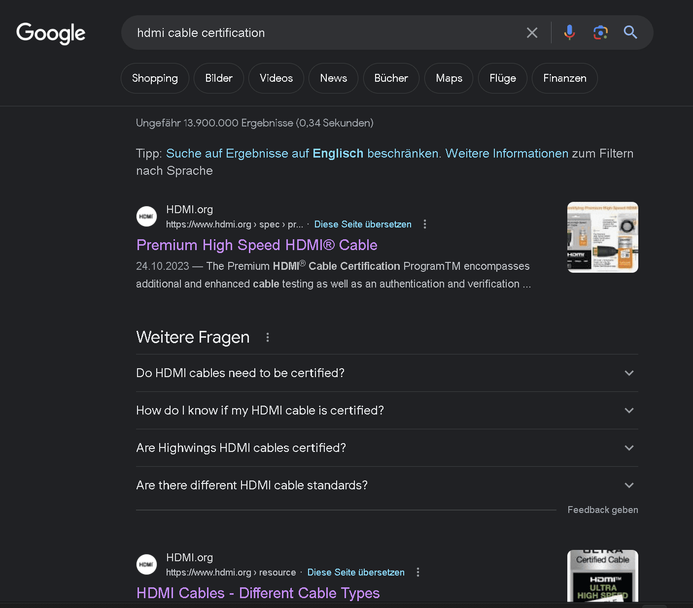 Die ersten beiden Suchergebnisse sind interessant und da gibt es viele Informationen über HDMI Kabel.