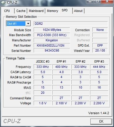 Was mir jetzt aber bei CPU-Z auffiel ist, dass unter "Max Bandwidth" 'PC2-5300 (333 MHz)' steht. Das verstehe ich nicht, ich hab mir doch 6400er RAM gekauft der auch von meinem Board unterstützt wird.
