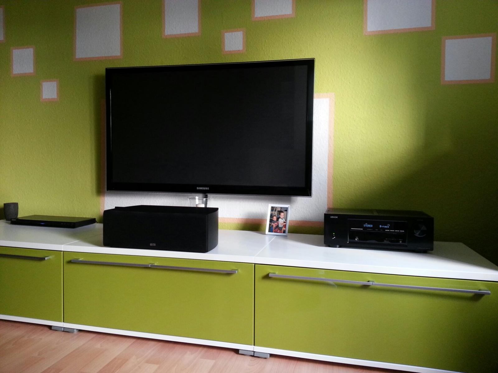 ), außerdem habe ich die Aufstellung der Front geändert, die standen vorher enger zusammen (auf dem Bild sieht man allerdings noch den alten Center und Blu-Ray Player):