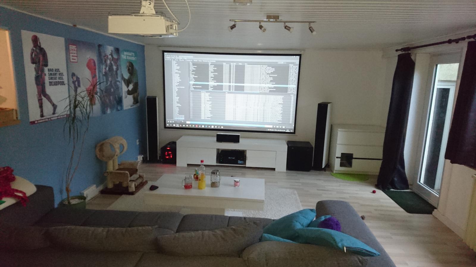 Um auch ein Bild zu posten, hier unsere Selbstbau Leinwand für das Kinoevent Heute Abend.