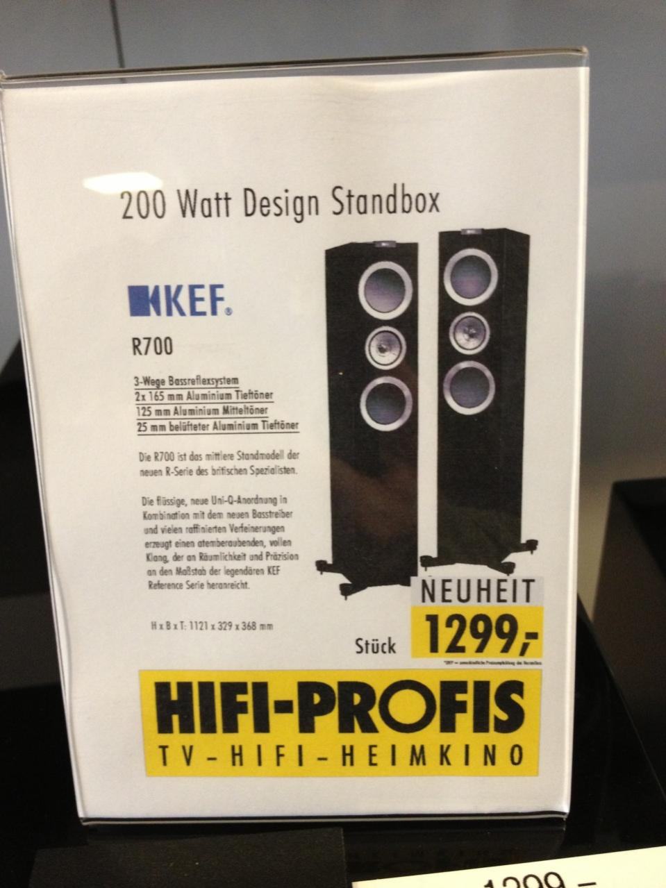 Zur R700, alleine gehört wahrscheinlich gar nicht mal schlecht, kann sie den Vergleich mit den anderen LS nicht standhalten. Die Höhen KEF-ungewohnt, zwar nicht schrill, aber diffus und irgendwie unpräsent. Mitten okay, Tiefgang der Box angemessen, aber nur halbwegs Präzise, fast etwas matschig.