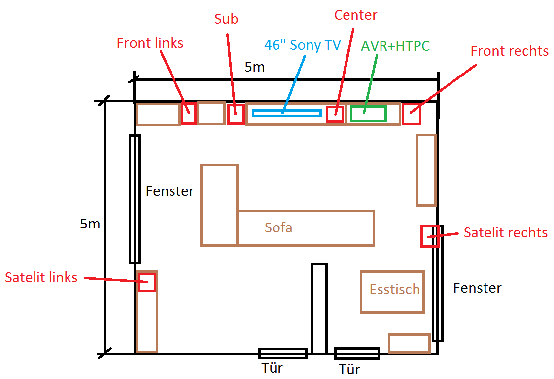 Als Budget habe ich mal 1200€ für ein 5.1 System, mit dem man auch Stereo hören kann, eingeplant.