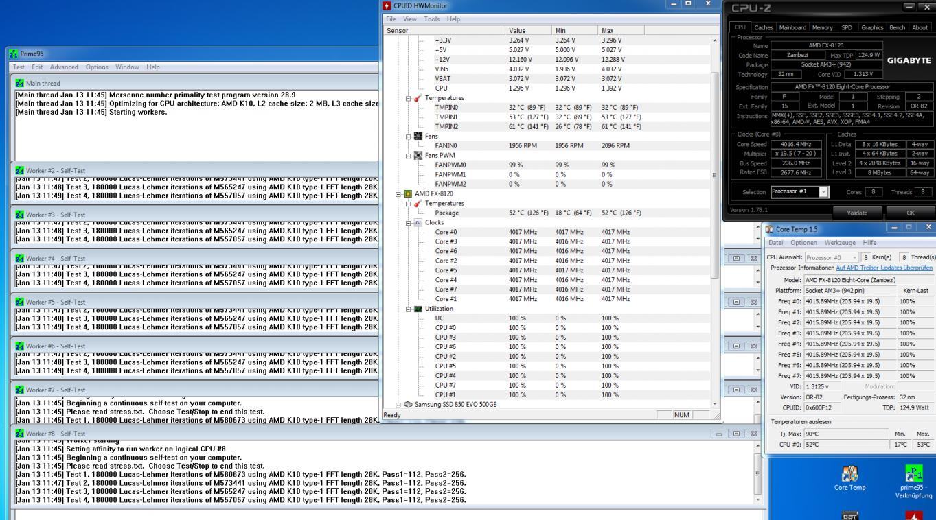 Sobald ich Prime95 anmache habe ich 51 Grad gemäß CoreTemp.