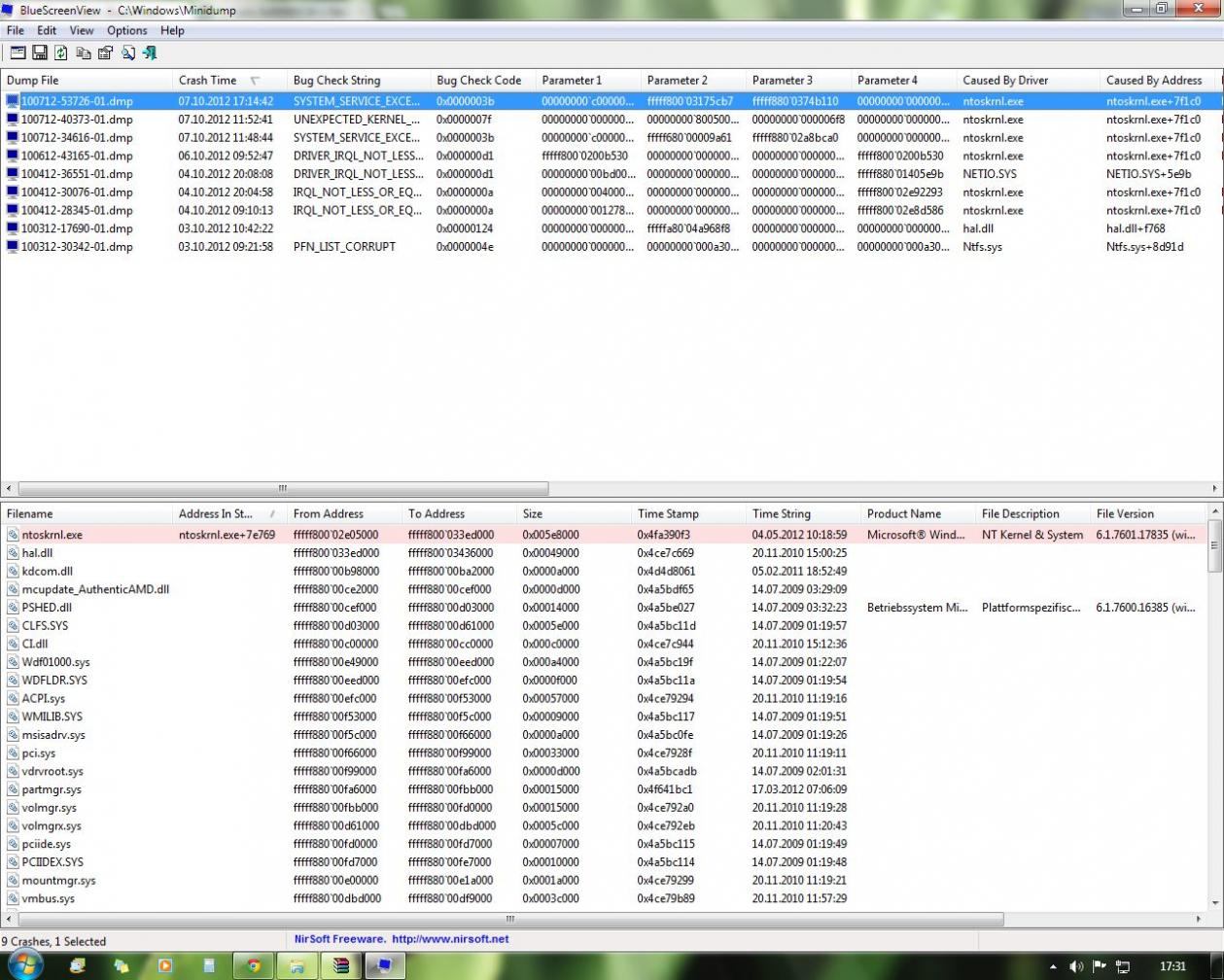 Hier ist noch ein Bild von BlueScreenView: