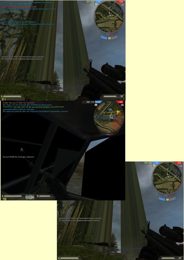 leider habe ich seit einer Woche folgendes Problem im 3D-Betrieb, im 2D-Betrieb (Desktop) kommen dagegen nur einzelne Pixelfehler vor. Ich habe eine HIS 9600XT (AGP), welche nicht übertaktet (mal abgesehen vom ATI Overdrive) ist. Neue Treiber und Co. sind alle samt installiert, das System scheint nicht zu warum zu sein. (Gehäuse offen, Karte lauwarm)